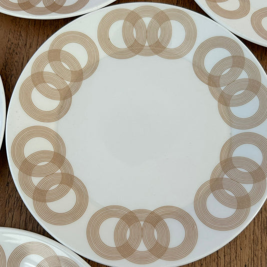 Vintage John Russell Hostess Tableware - Set of 6 Olympus 7" Side Plates - Geometric Brown And White Circle Design