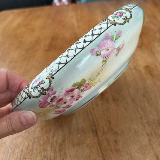 Vintage Crownford Ware Serving Bowl – Art Deco (1920s-1930s) - Black and White Trellis Design