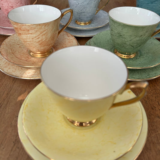 Vintage Royal Albert Gossamer 18-Piece Tea Set – Harlequin Colours (6 Trios) - Rainbow Colours