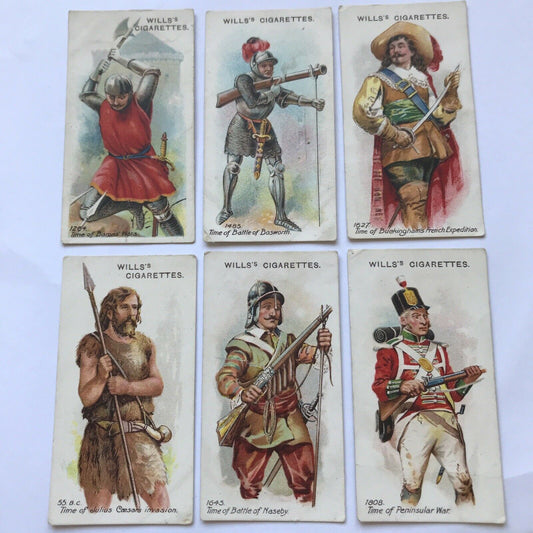 6 x ARMS AND ARMOUR WILLS CIGARETTE CARDS Nos. 1 16 27 35 38 and 46