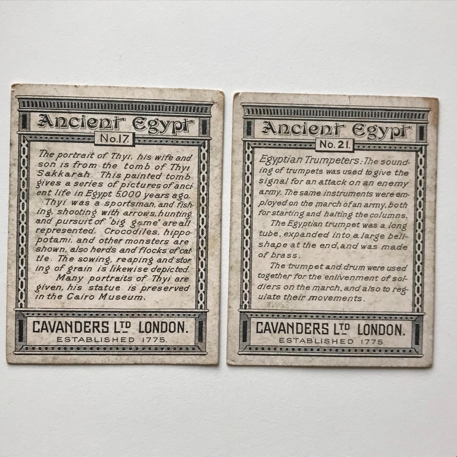 2 x ANCIENT EGYPT Cigarette cards Cavanders nos. 17 21 portrait of Thyi & Trumpe