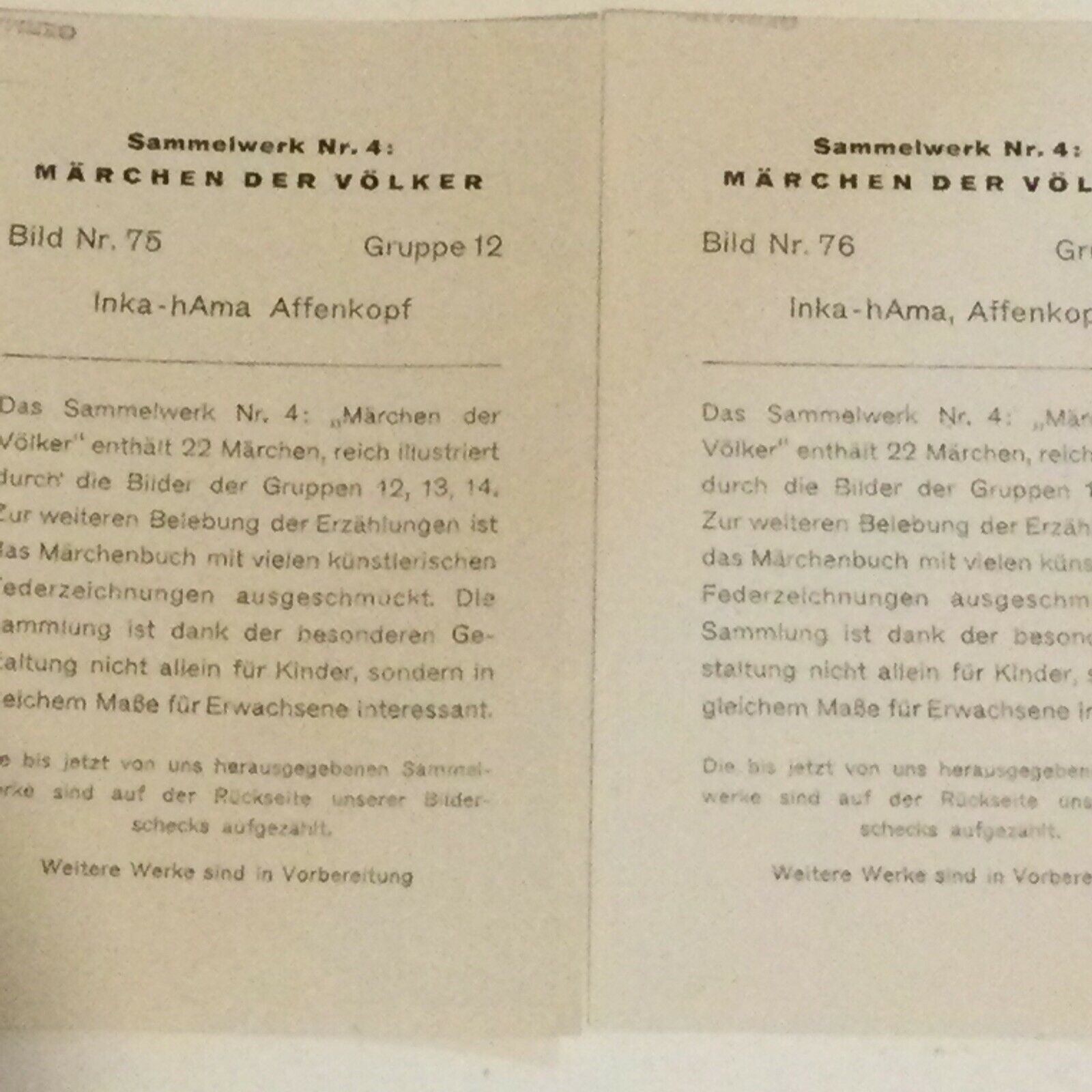 2 X Vintage 1930s Inka-hAma Affenkopf Images. Sammelwerk Cigarette Cards 75 76