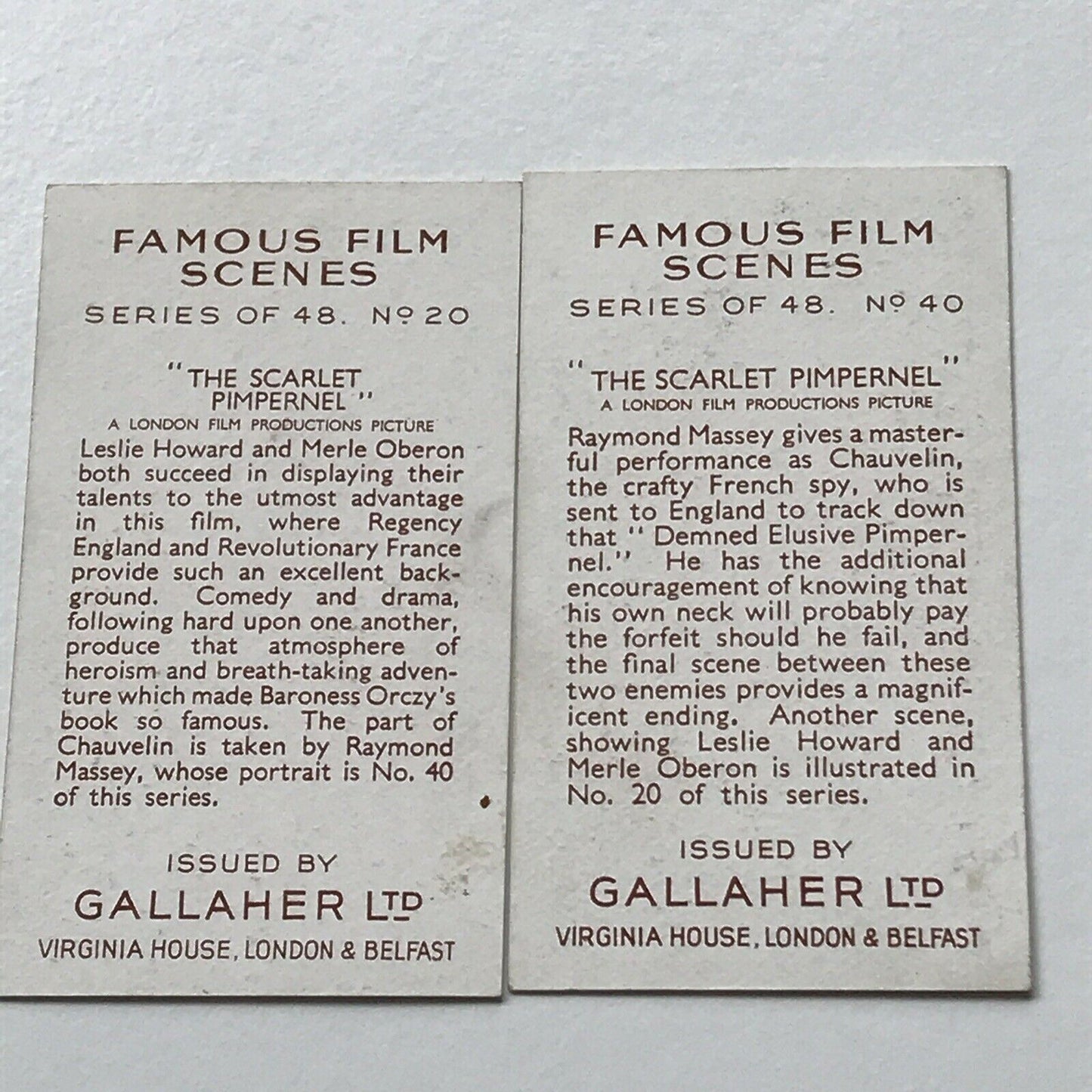 2xGallaher Cigarette Cards Famous Film Scenes #20 40 SCARLET PIMPERNEL 1930s