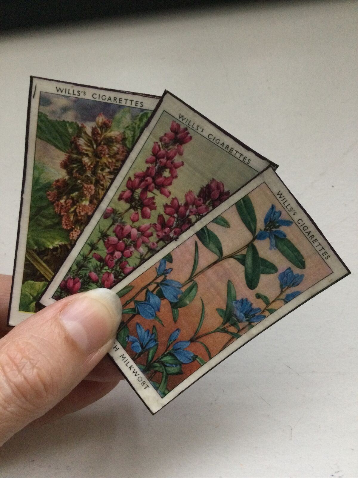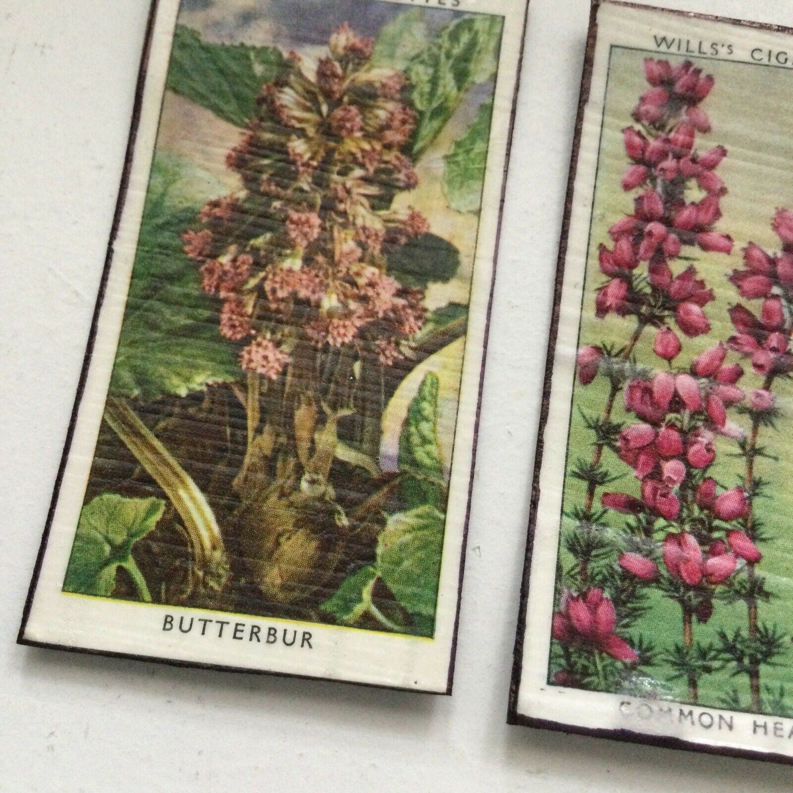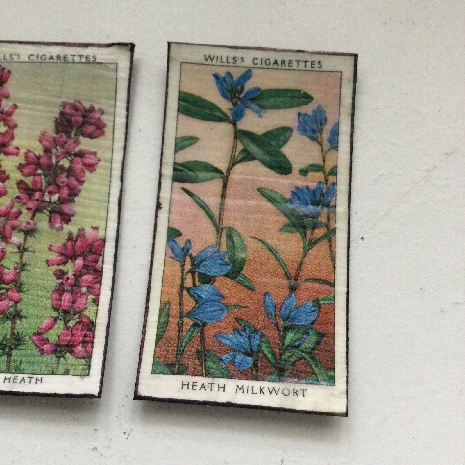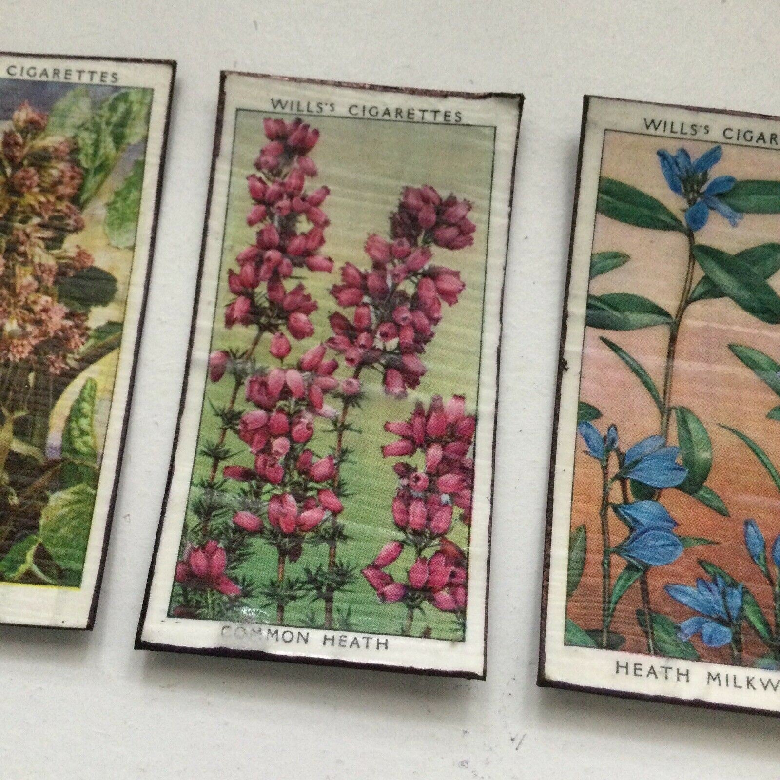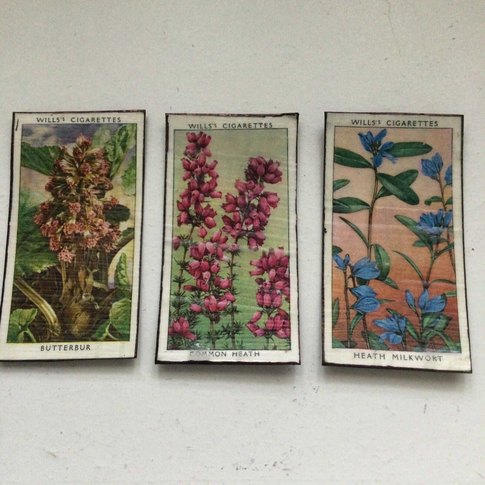 3 x Fridge Magnets Wild Flowers made from vintage 20s + 30s cigarette cards