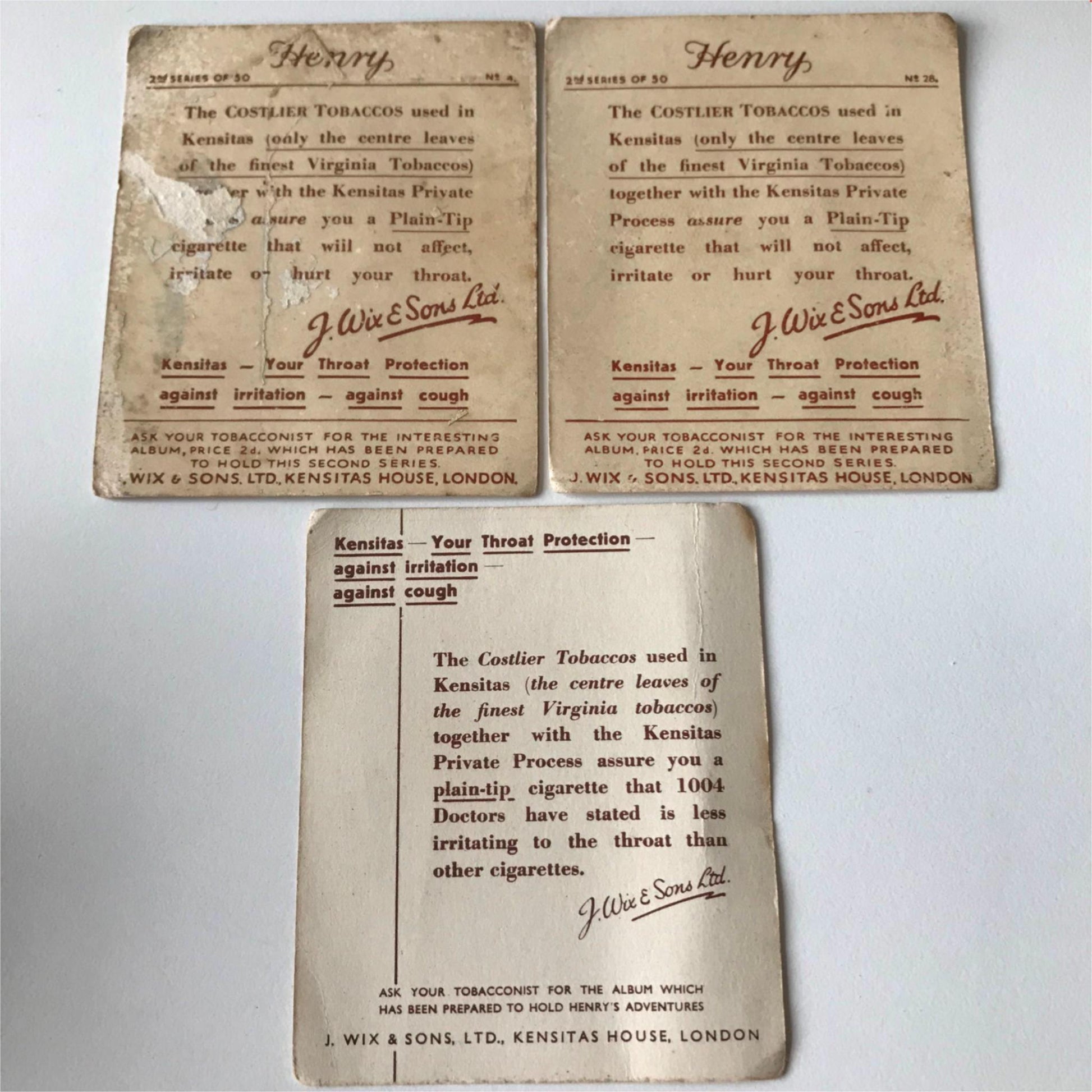 3 x HENRY Kensitas Wix Cigarette cards 4/50 28/50 and un numbered