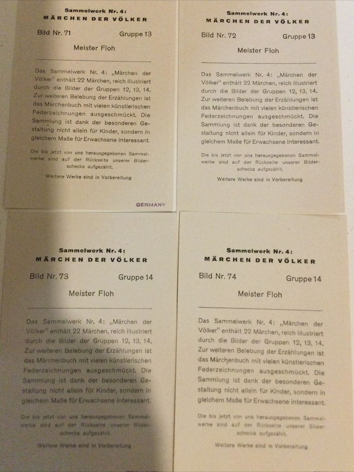 4 X Vintage 1930s Master Flea Images. Sammelwerk Cigarette Cards Nos. 71-74 Floh