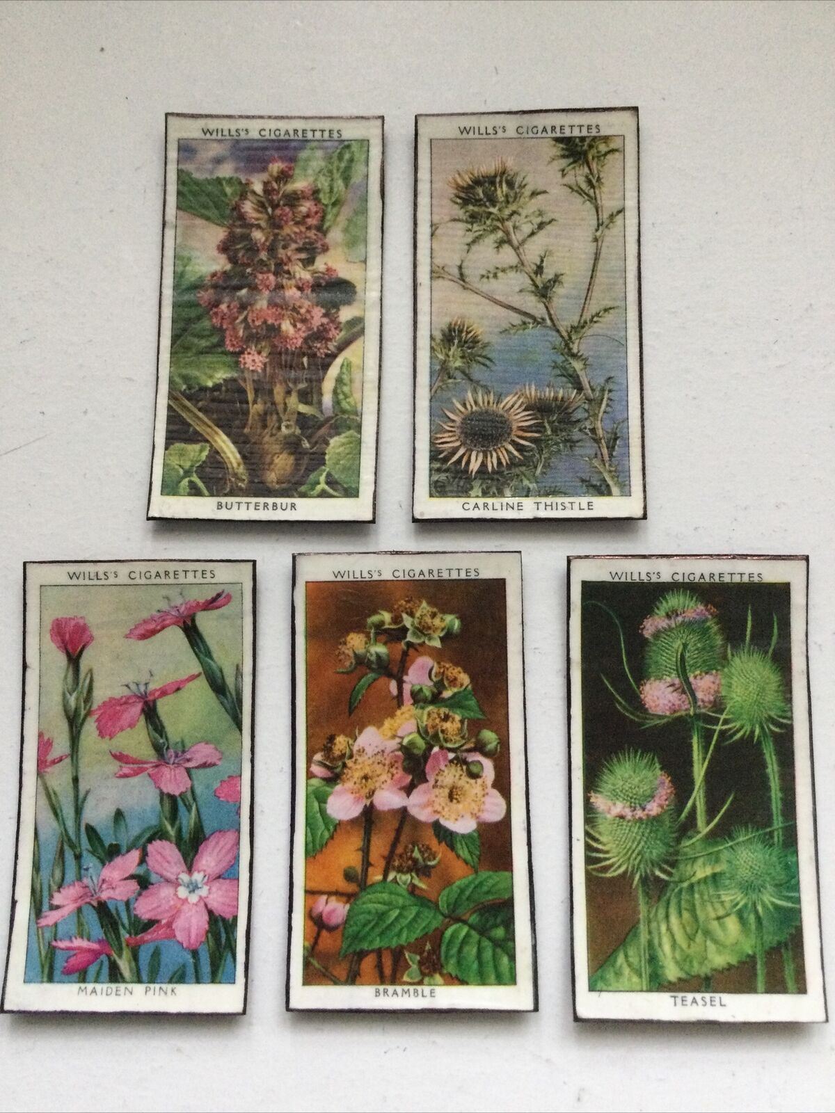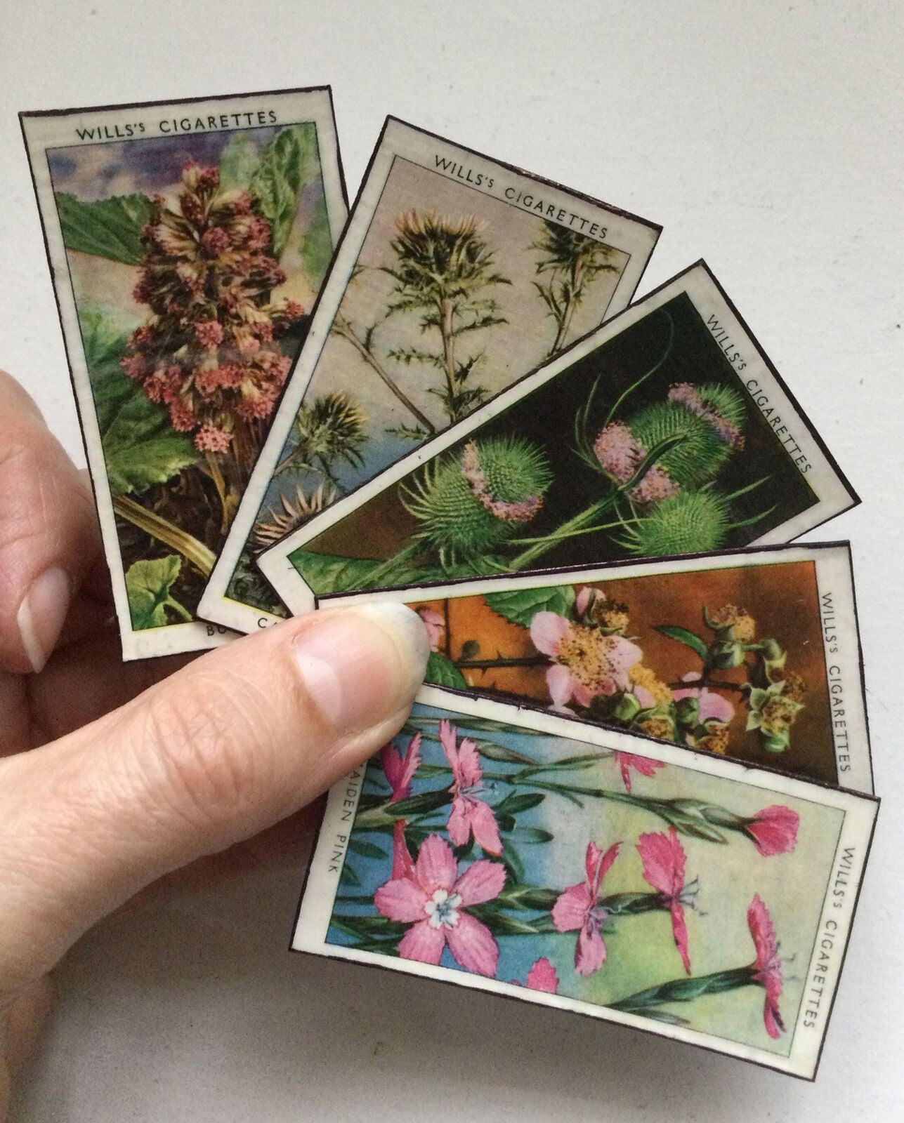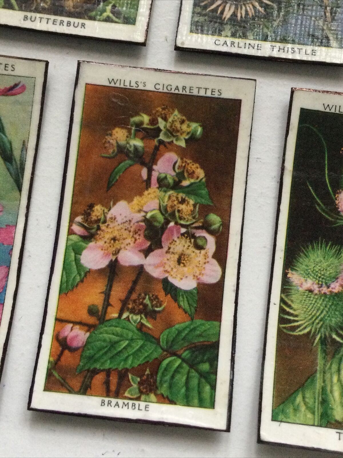 5 x Fridge Magnets Wild Flowers made from vintage 20s + 30s cigarette cards