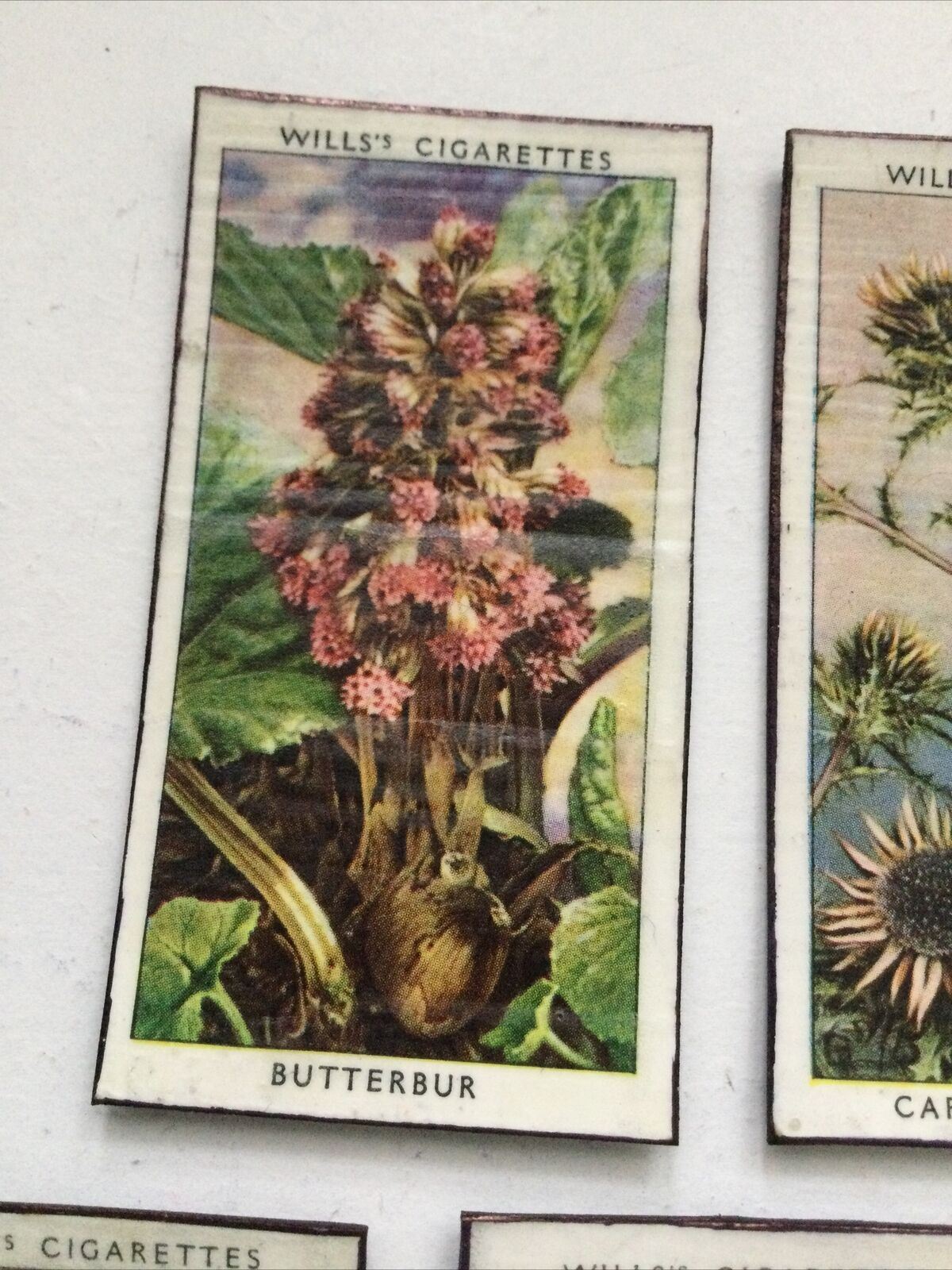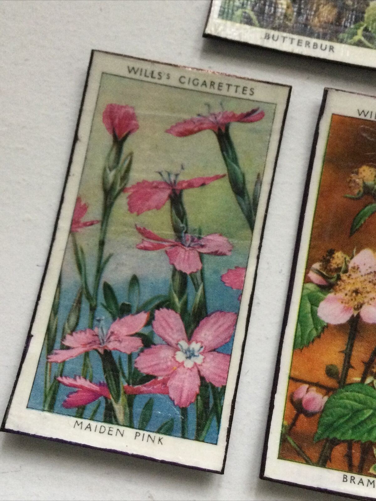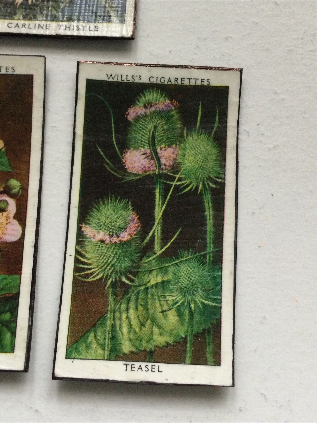 5 x Fridge Magnets Wild Flowers made from vintage 20s + 30s cigarette cards