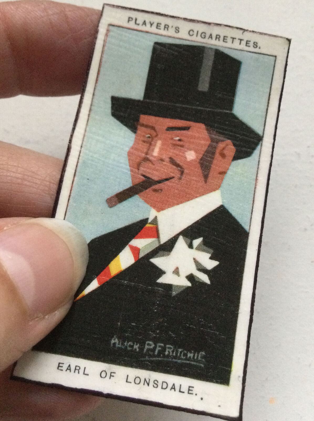 5th Earl of Lonsdale caricature fridge magnet. Made from vintage cigarette card.