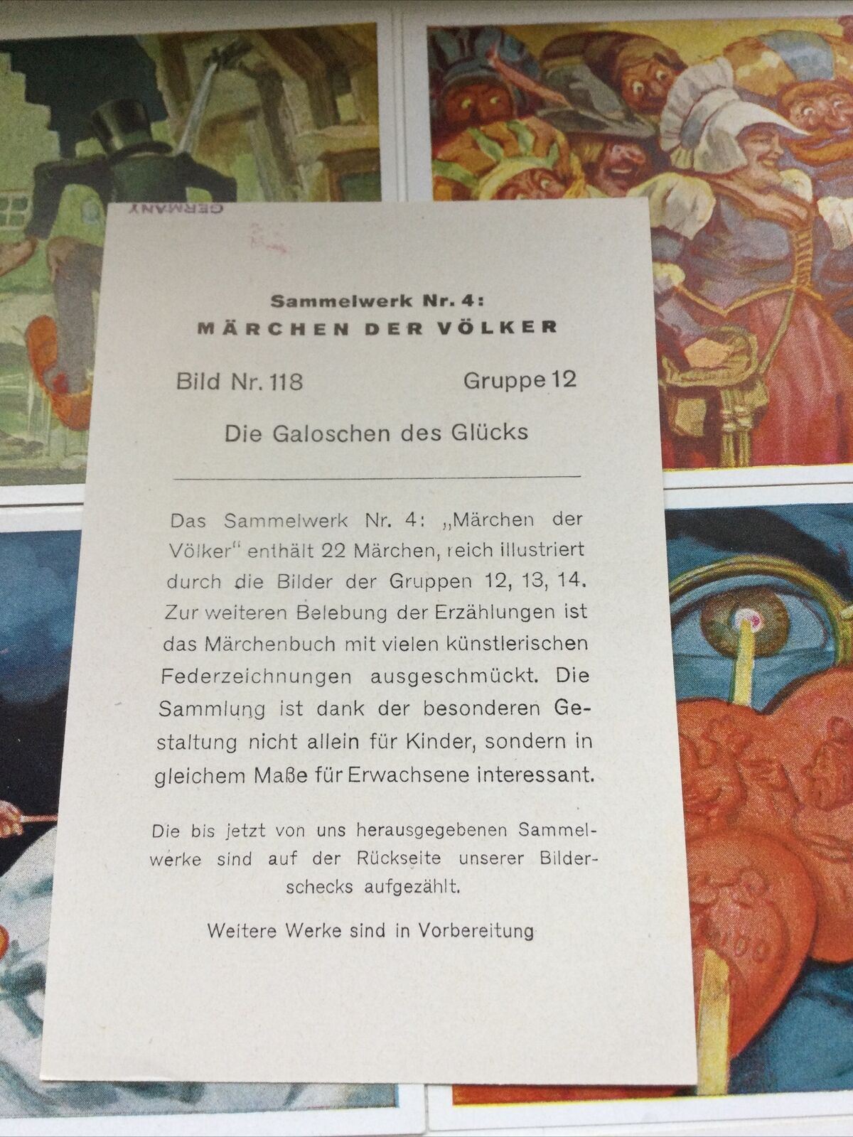 Printed in 1933, when Hitler was first coming to power. This series showed international folk tales, which were later discontinued and just German folk tales shown, to fit in with Hitlers agenda.