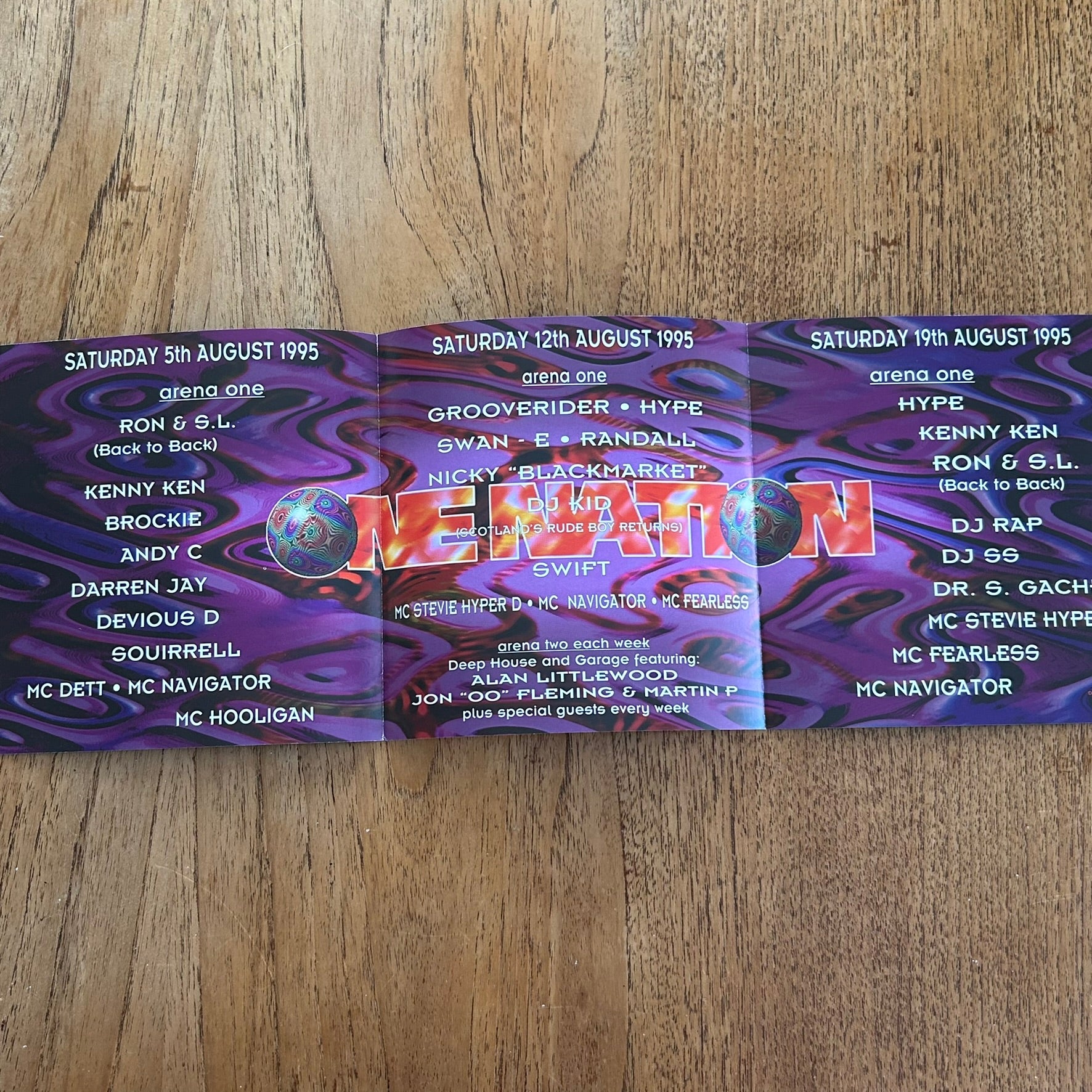 90s RAVE / Dance Memorabilia. Club One Nation flyer. Rhythm Station, Aldershot. August 1995
