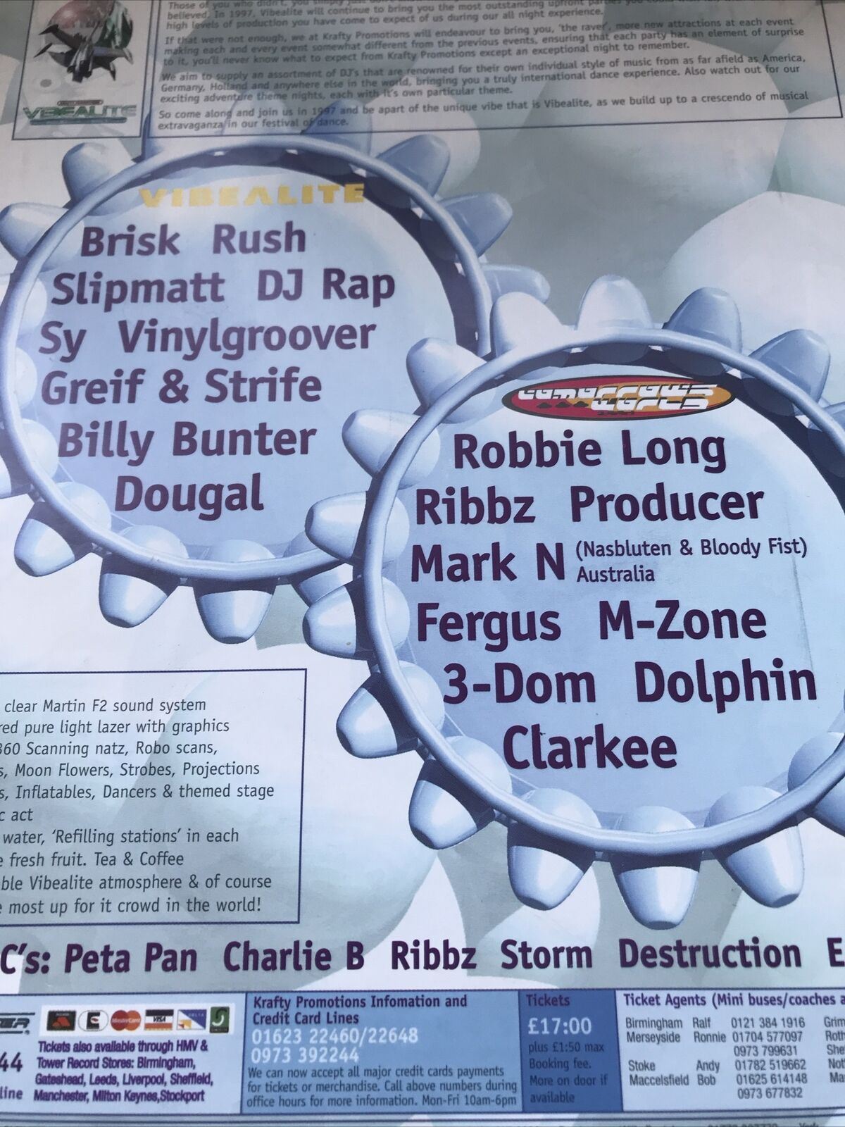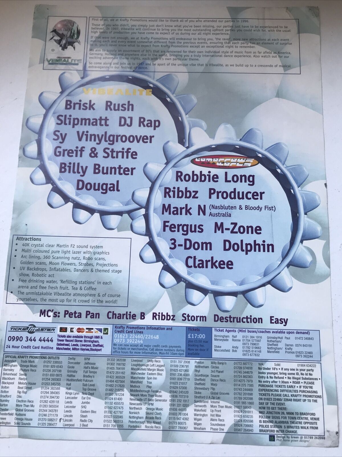 90s Y2K RAVE Memorabilia BRADFORD FEB 1997 VIBEALITE Brisk Rush Slipmatt DJ Rap