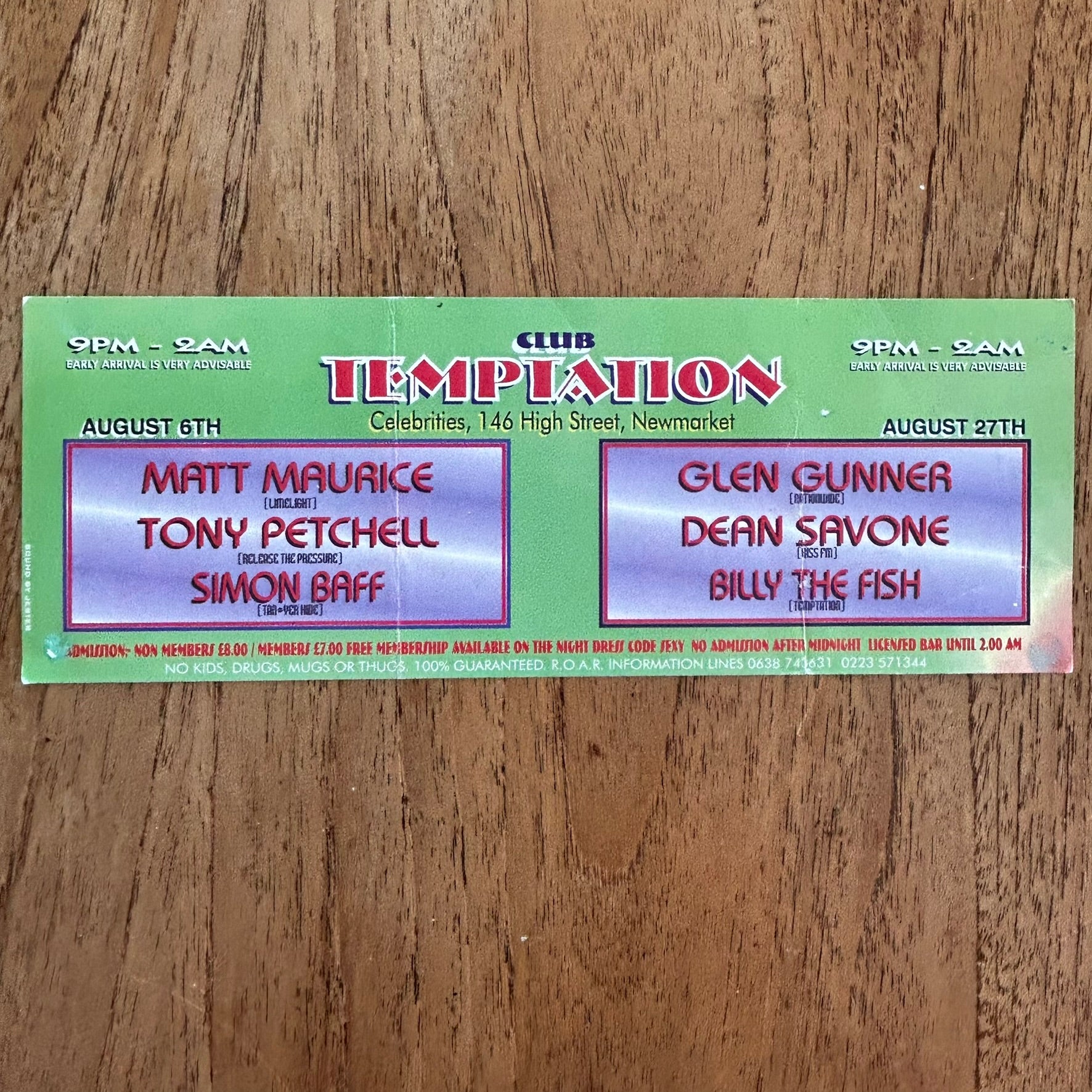 90s Y2K RAVE MEMORABILIA Club Temptation, Newmarket