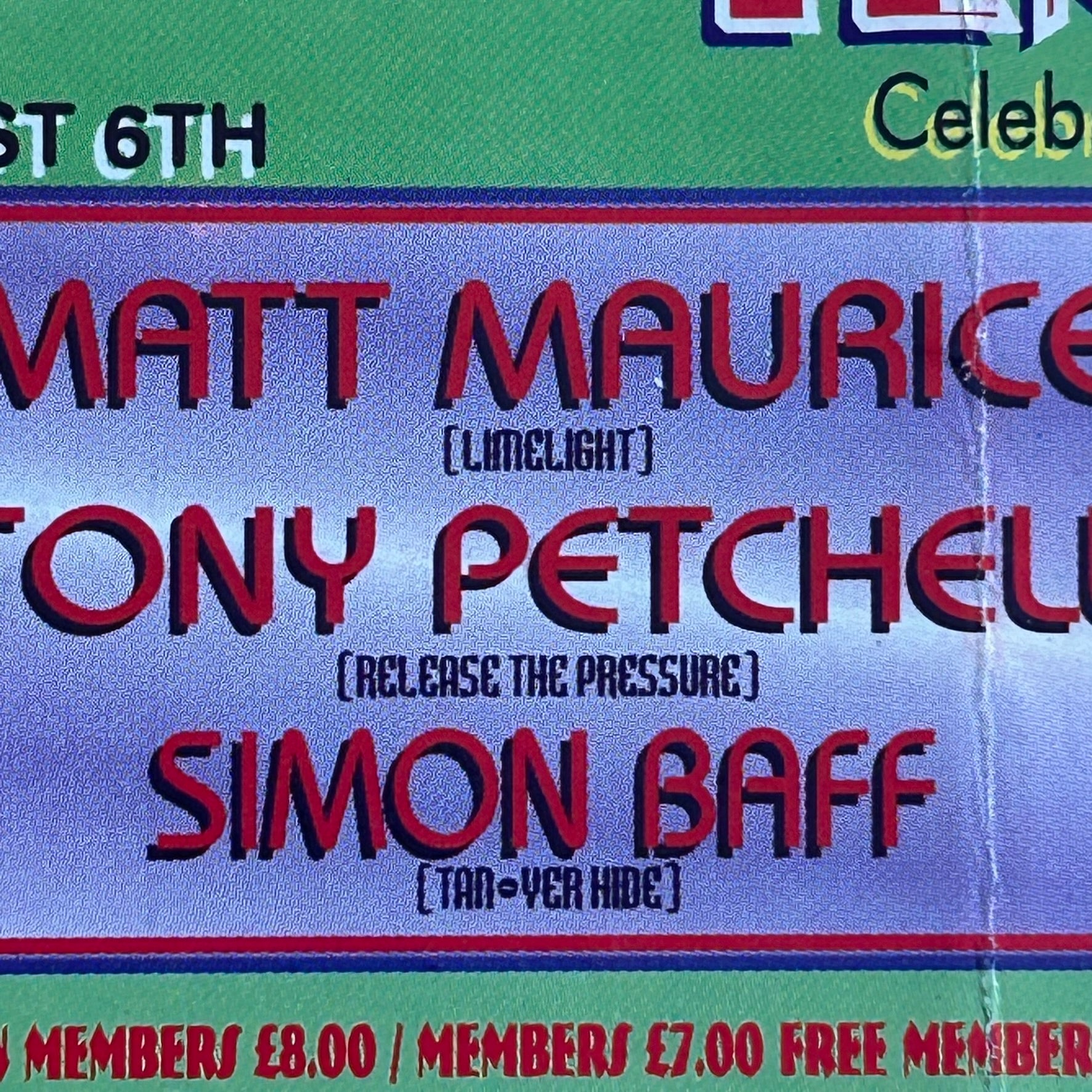 90s Y2K RAVE MEMORABILIA Temptation Celebrities, Newmarket August 1994 small flyer. Matt Maurice