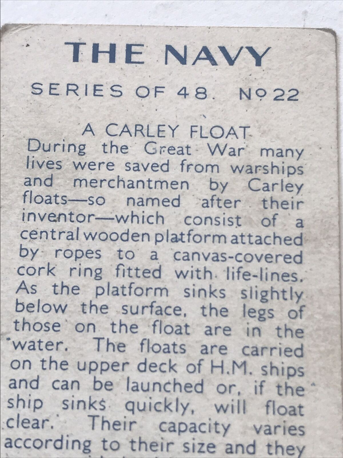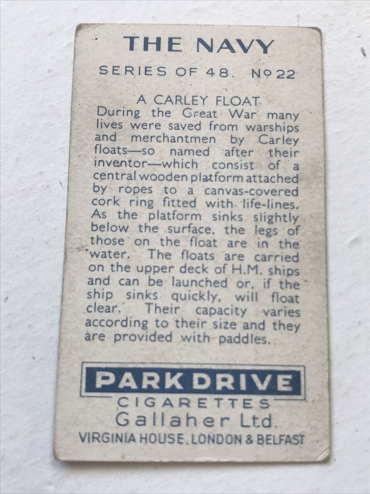 A CARLEY FLOAT Park Drive Gallaher Cigarette Card The Navy #22 Great War WWI
