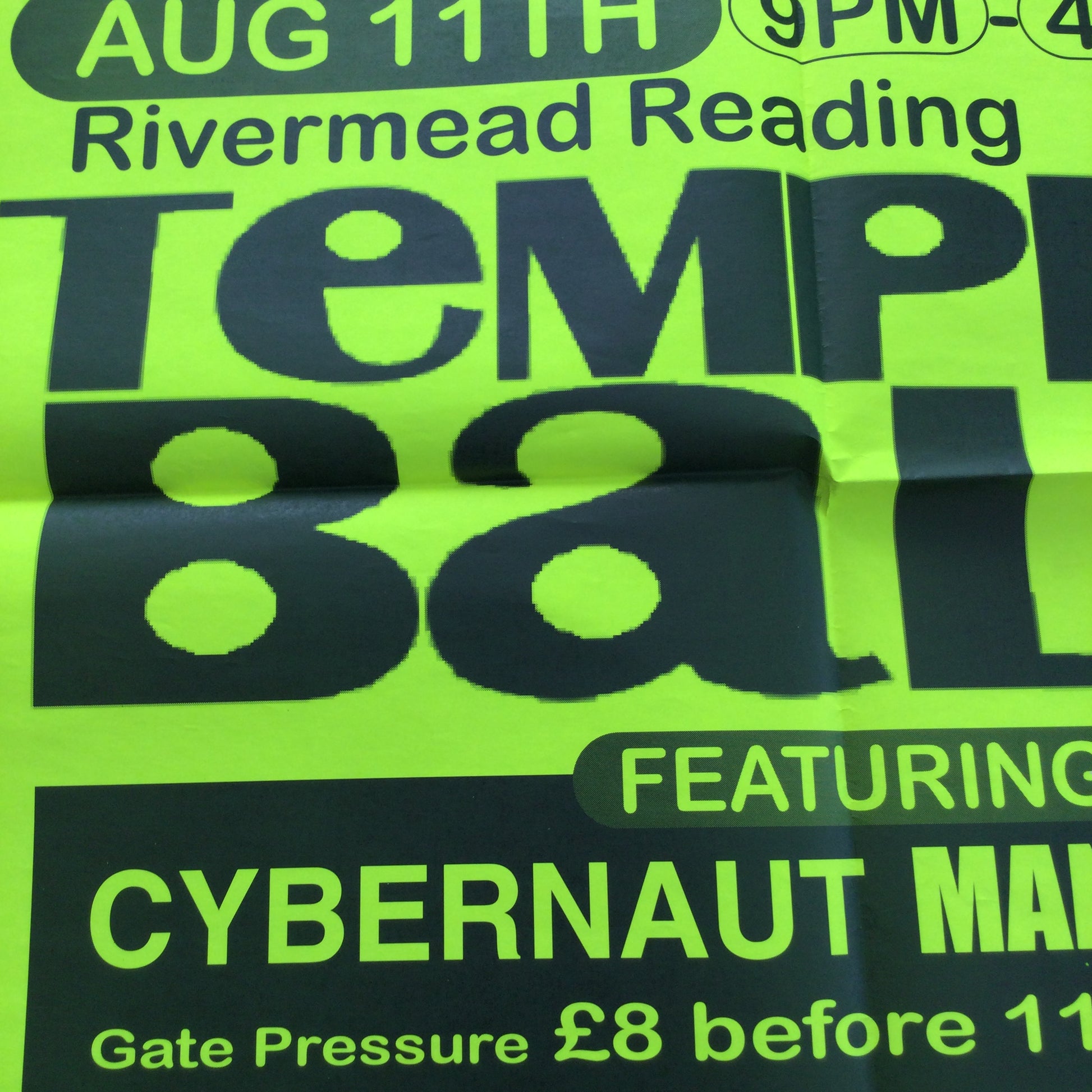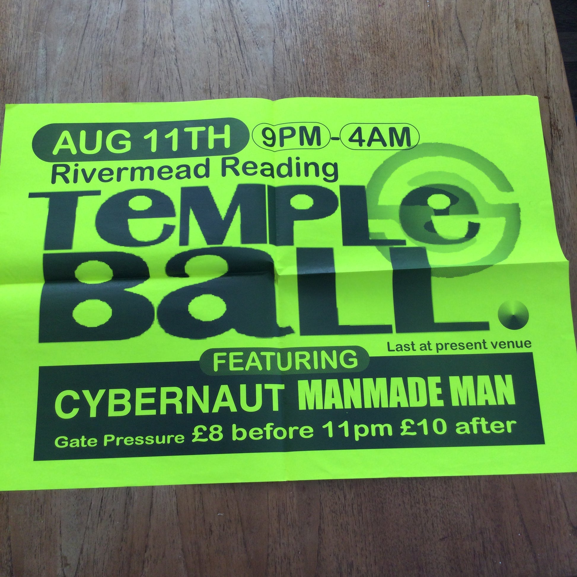 A2 Large Poster. Temple Ball Rivermead Reading. Cybernaut, Manmade Man. 90s Music scene Reading town.