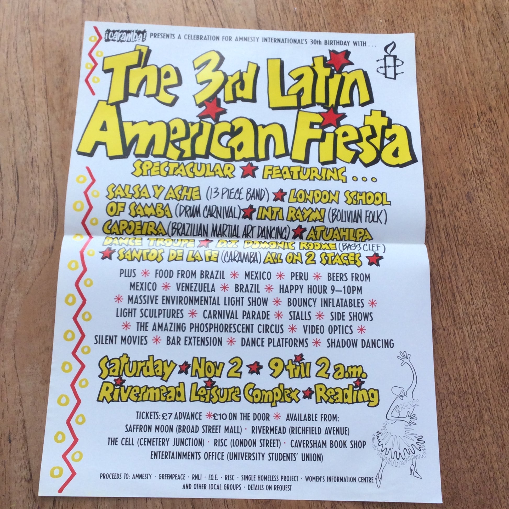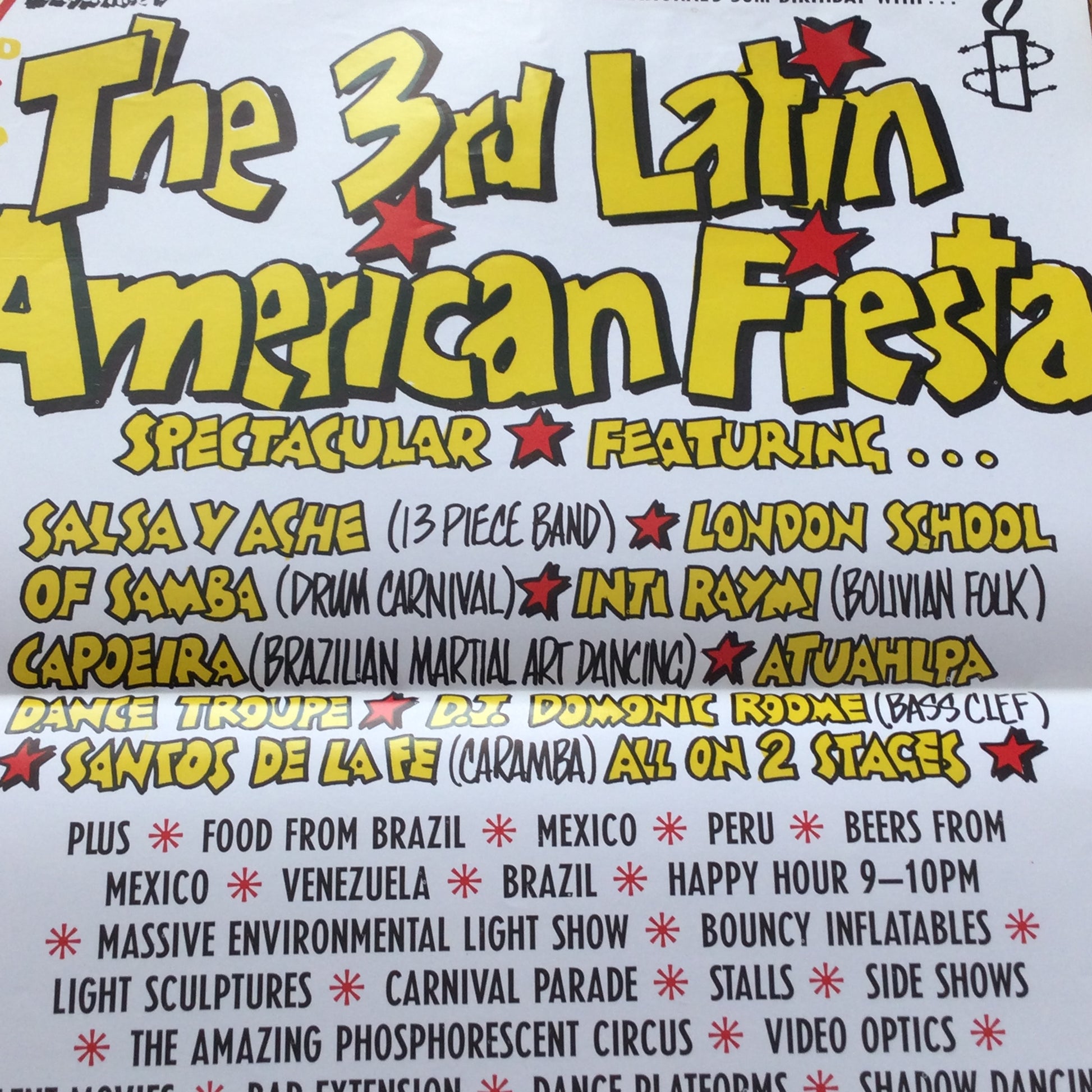A3 Poster 3rd Latin American Fiesta. Celebrating Amnesty International's 30th Birthday 1991