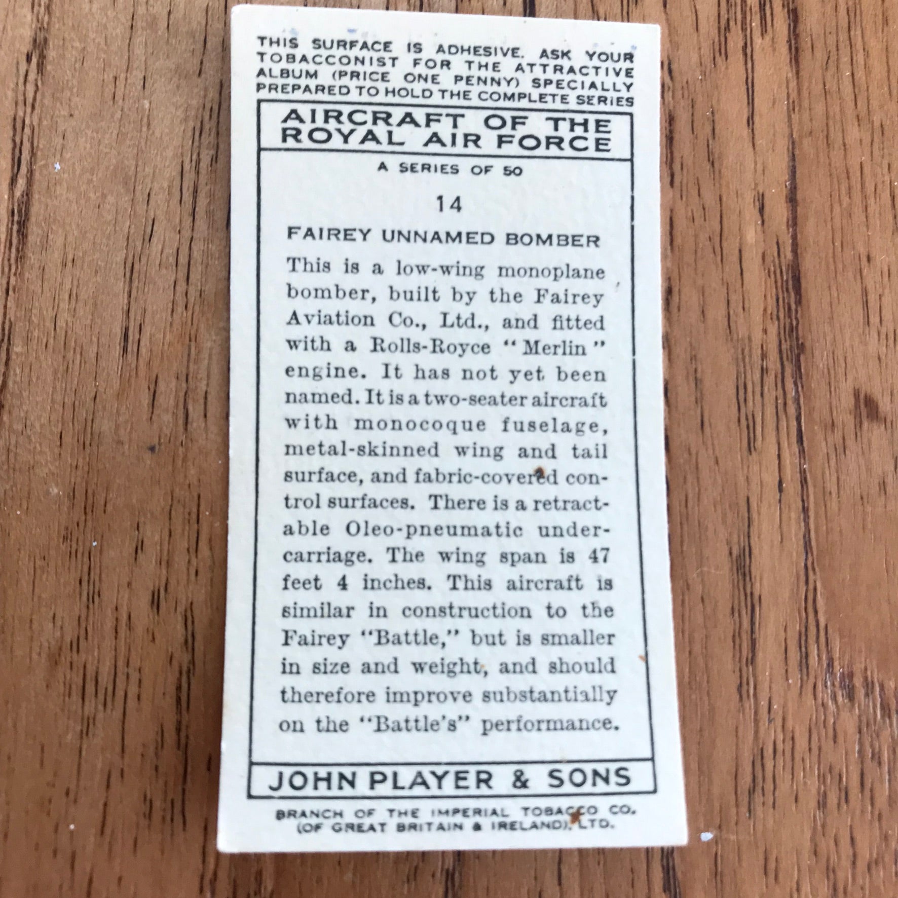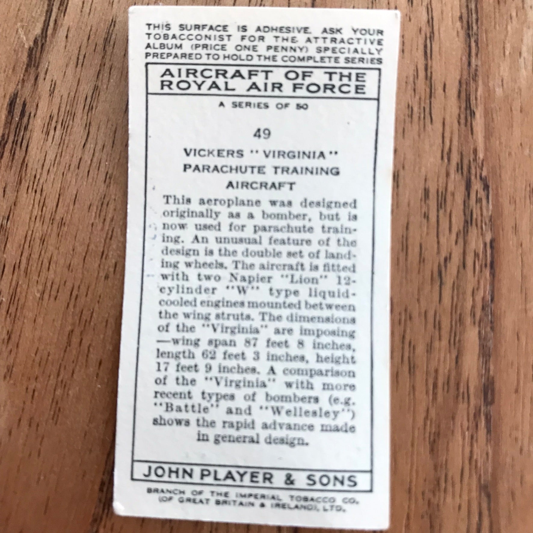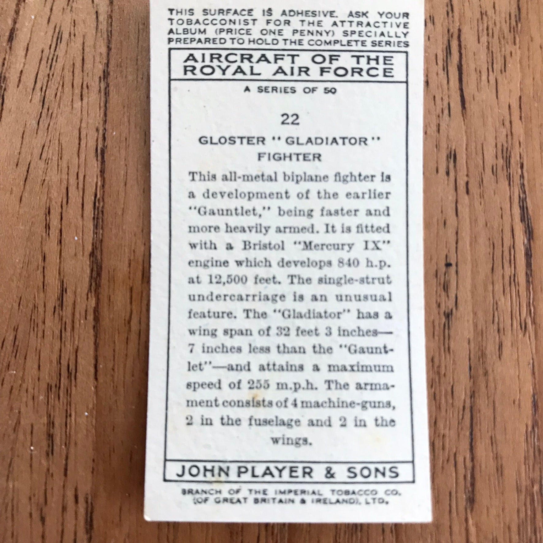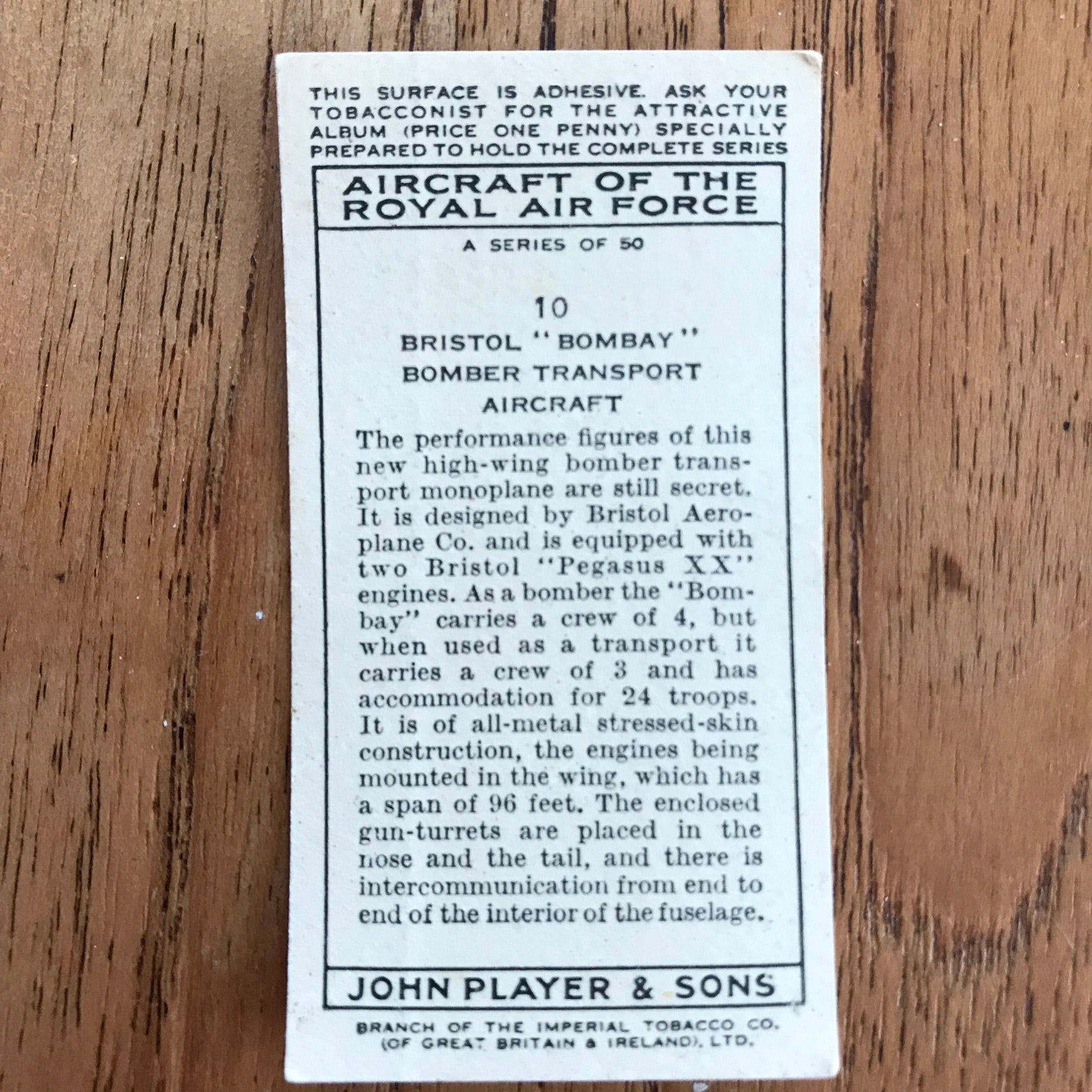 There were 50 cards in total, providing a glimpse into the aviation technology of the 1930s.