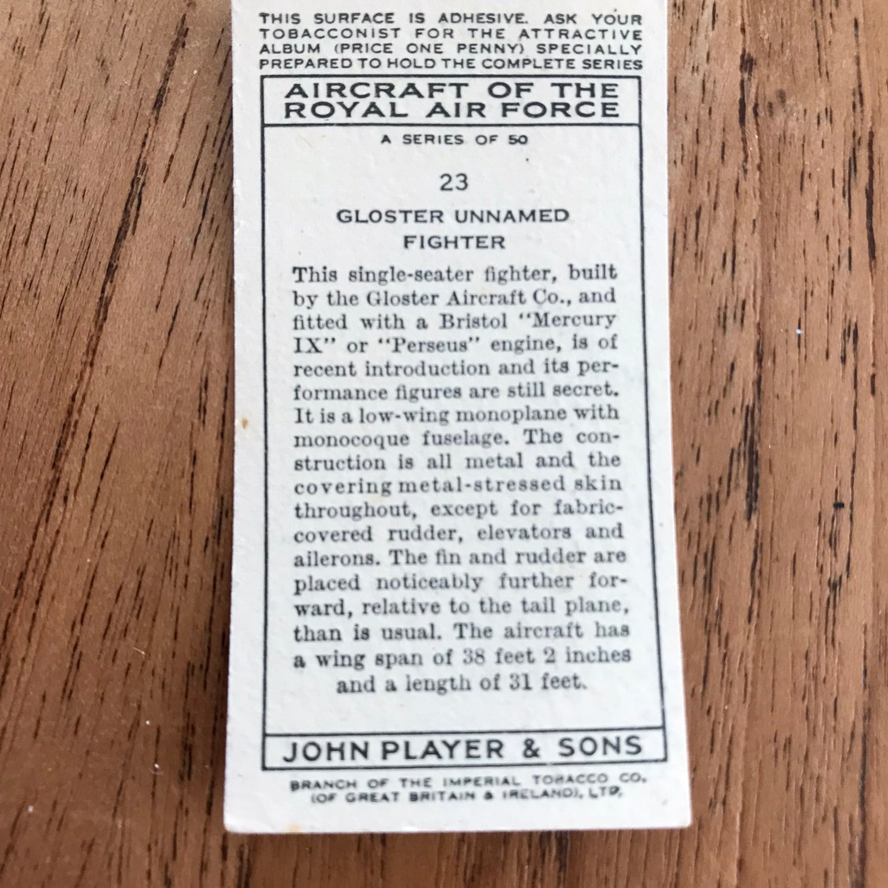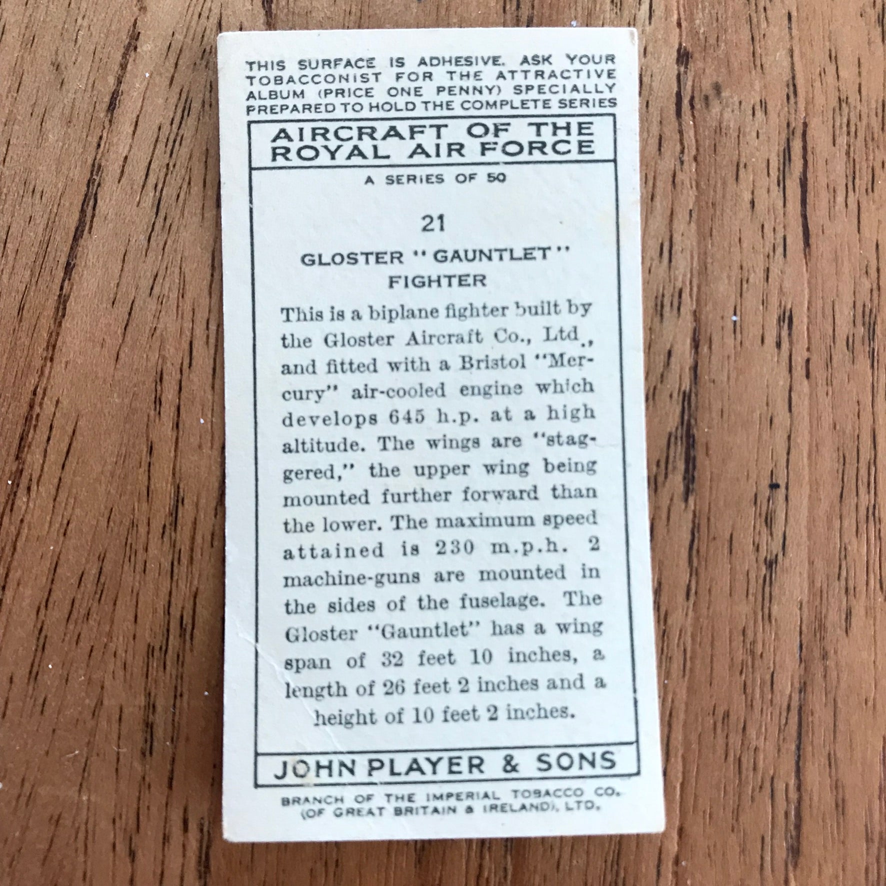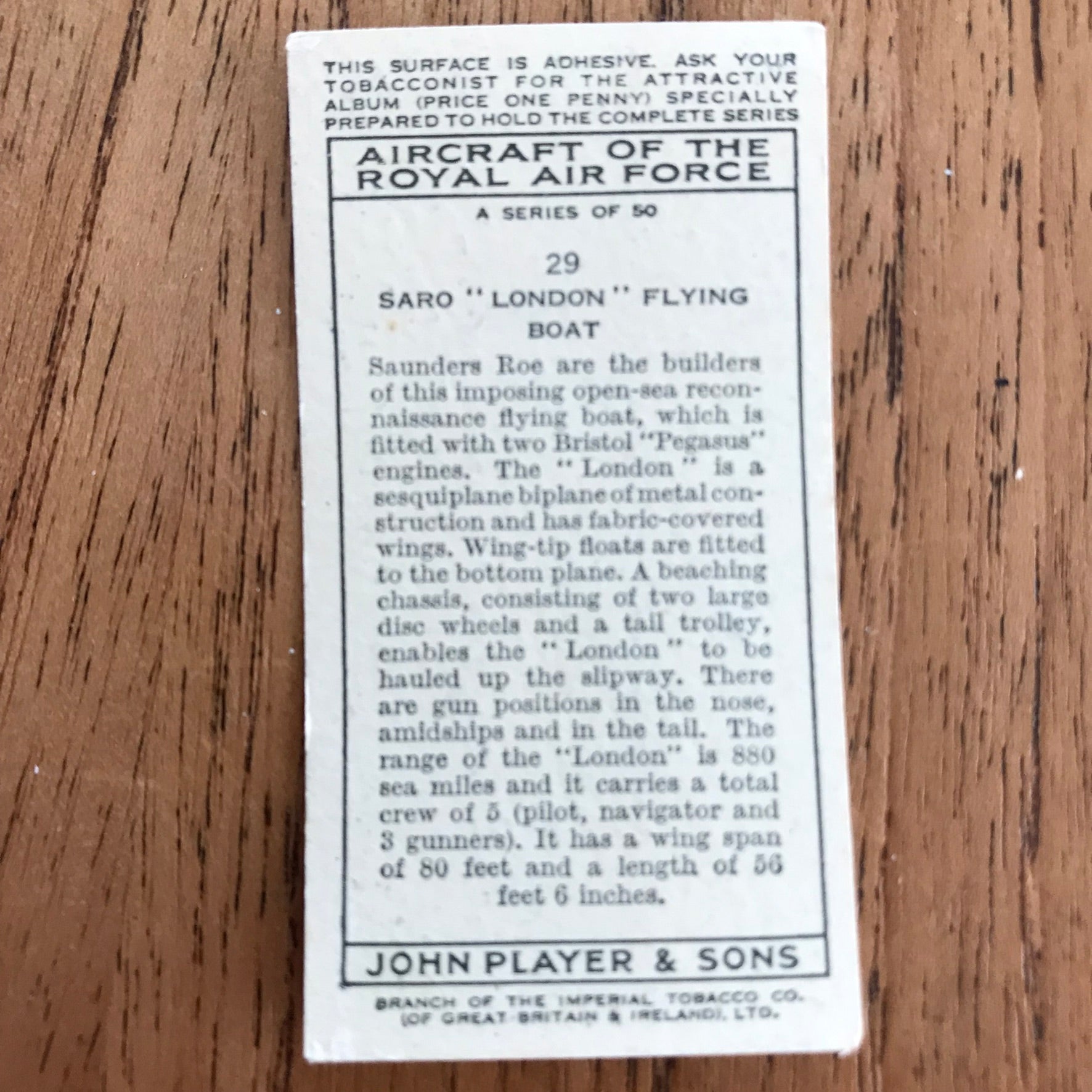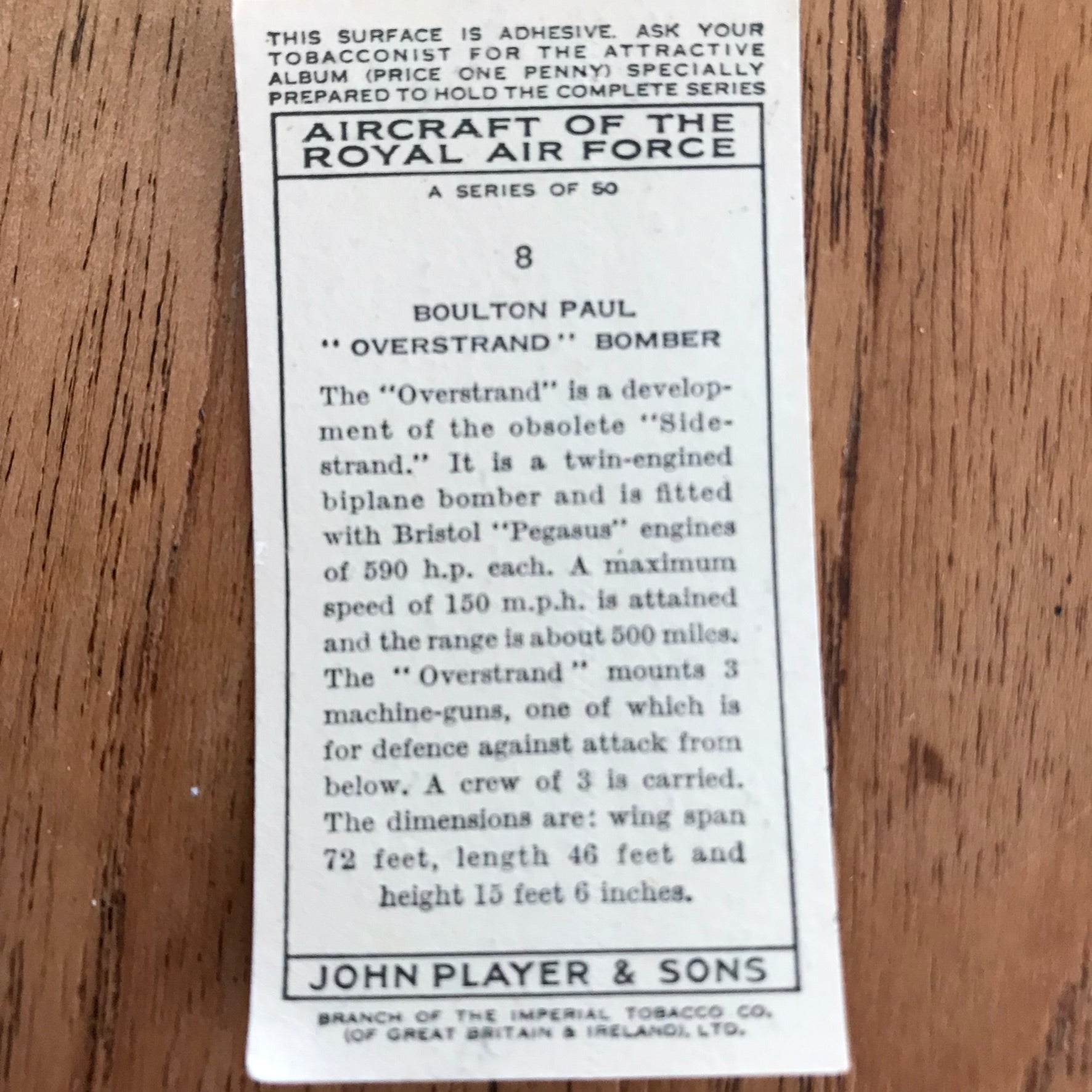 There were 50 cards in total, providing a glimpse into the aviation technology of the 1930s.
