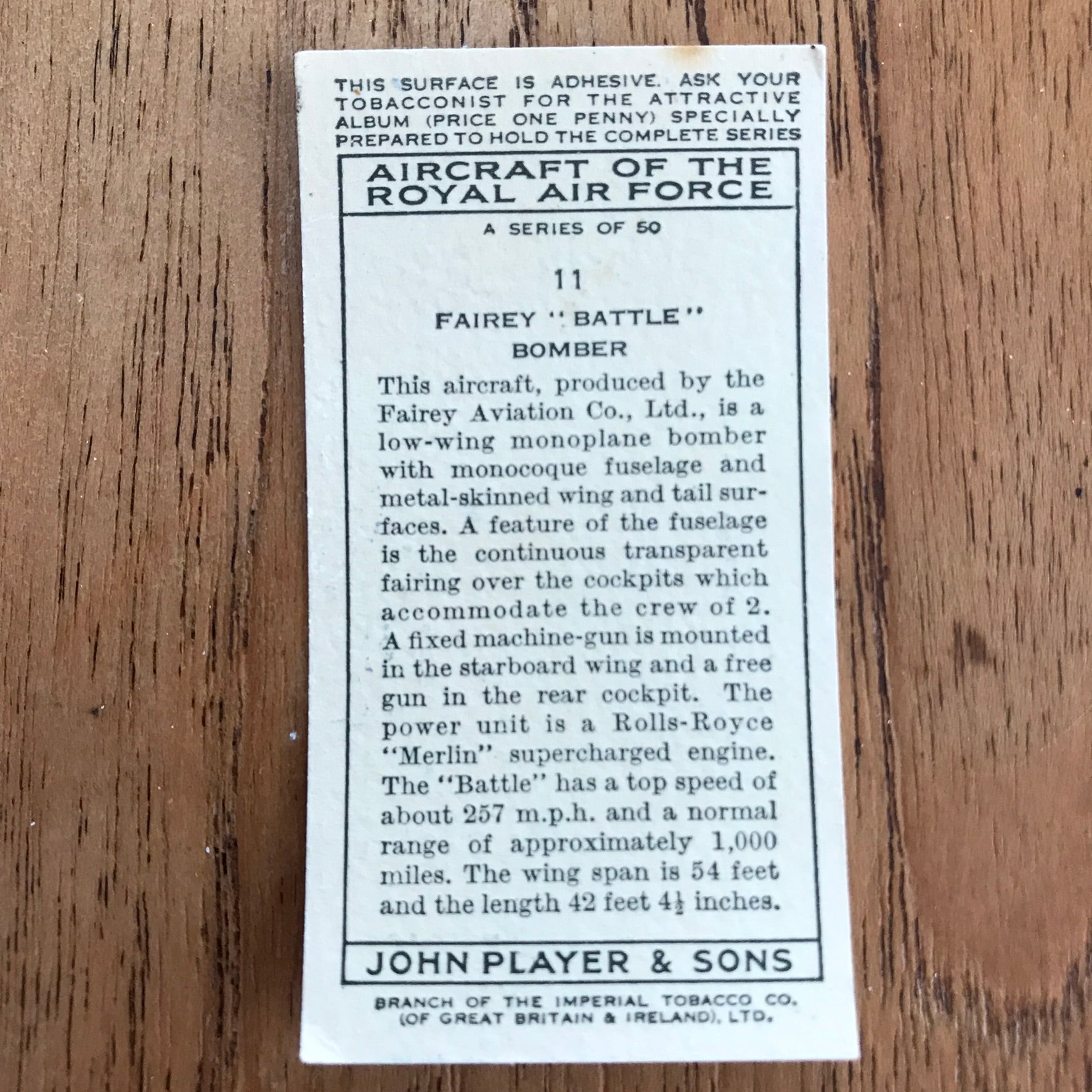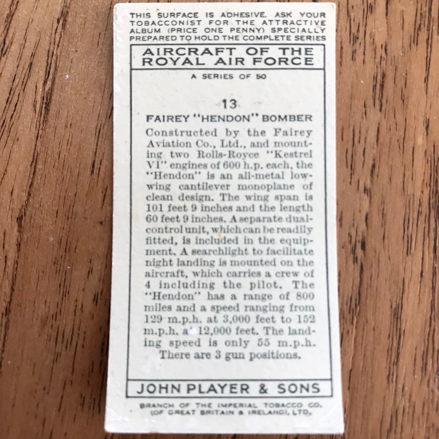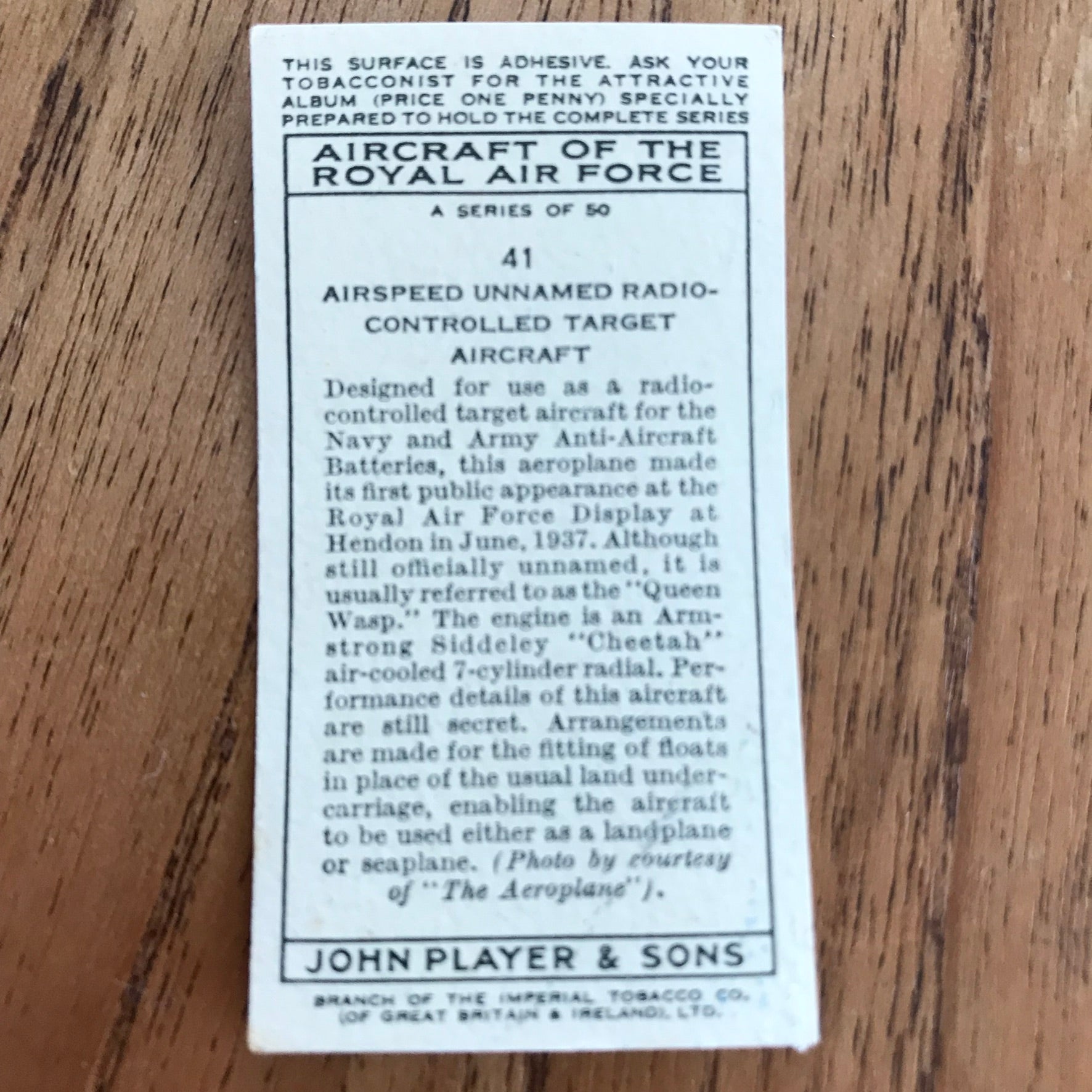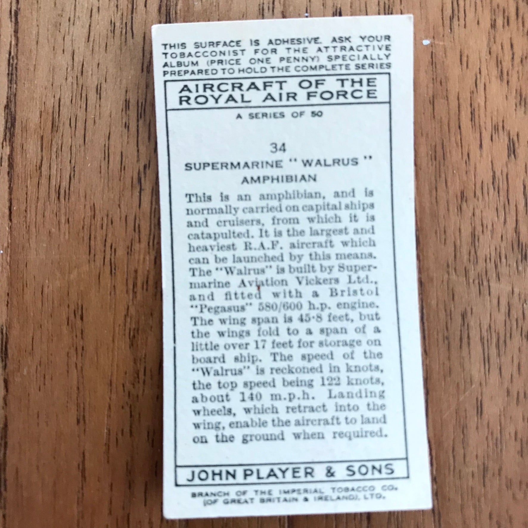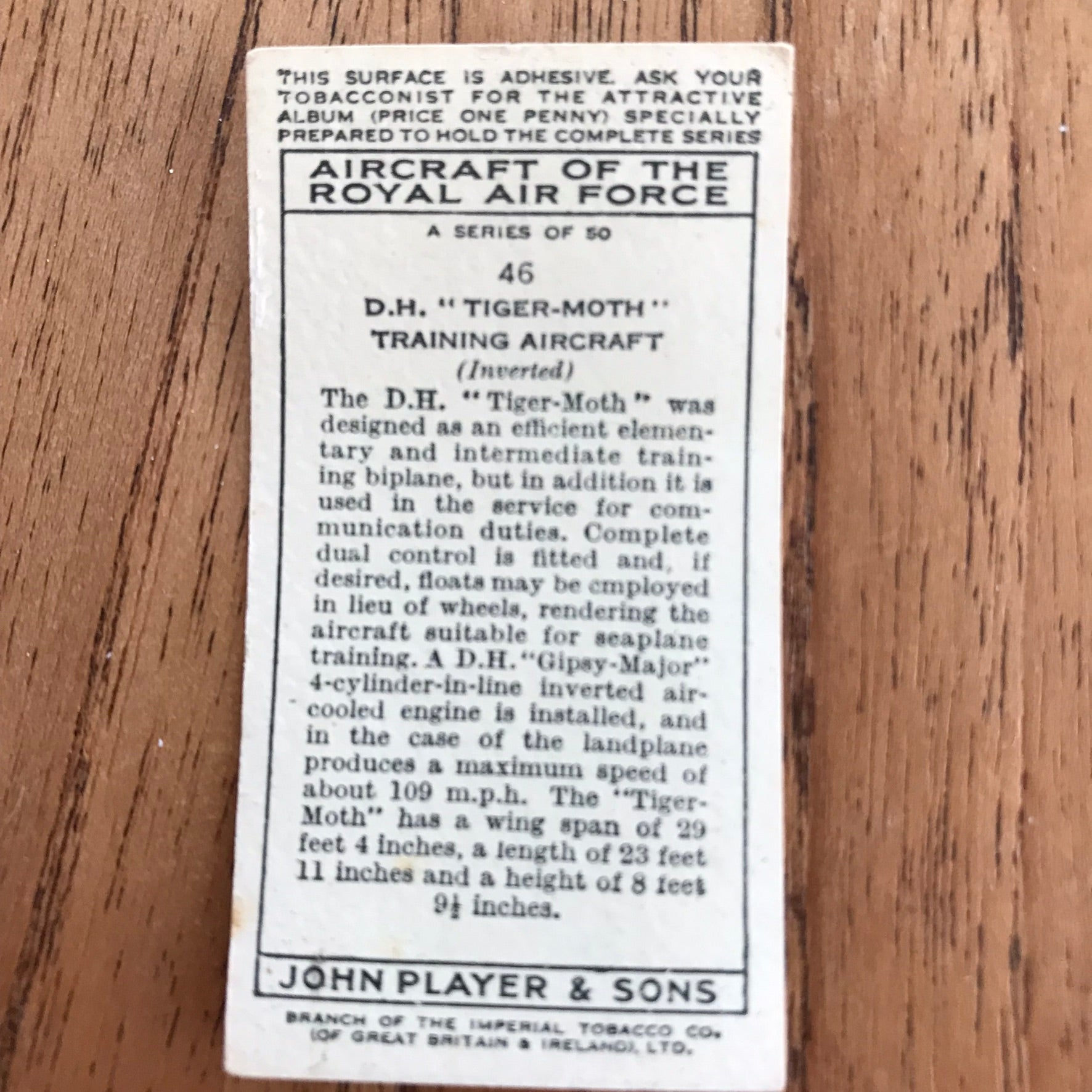 There were 50 cards in total, providing a glimpse into the aviation technology of the 1930s.