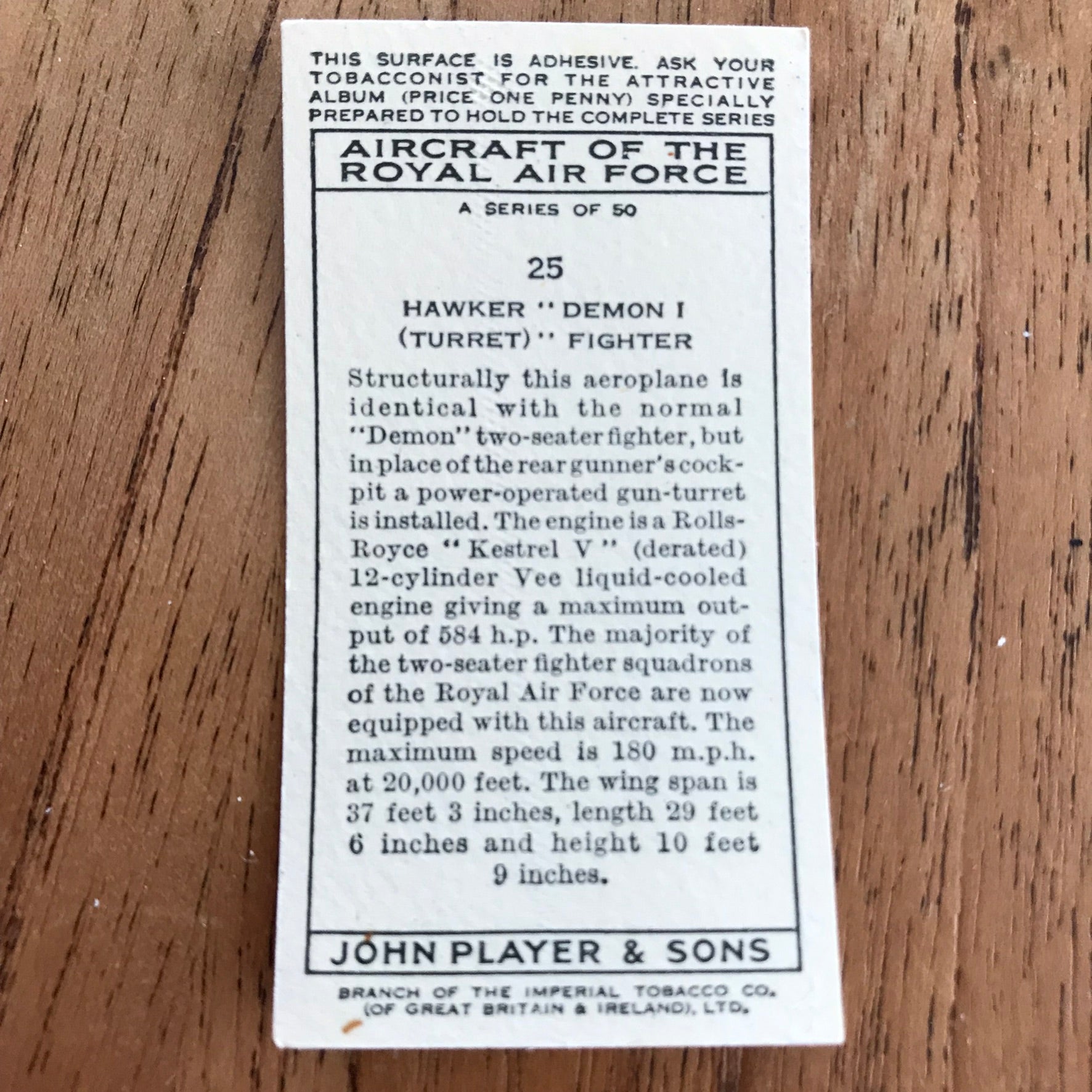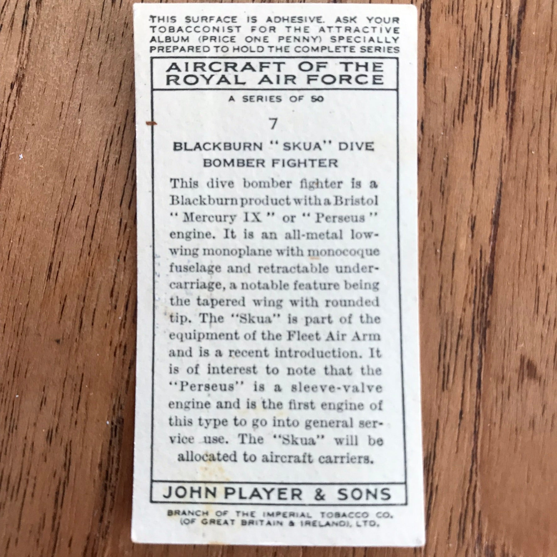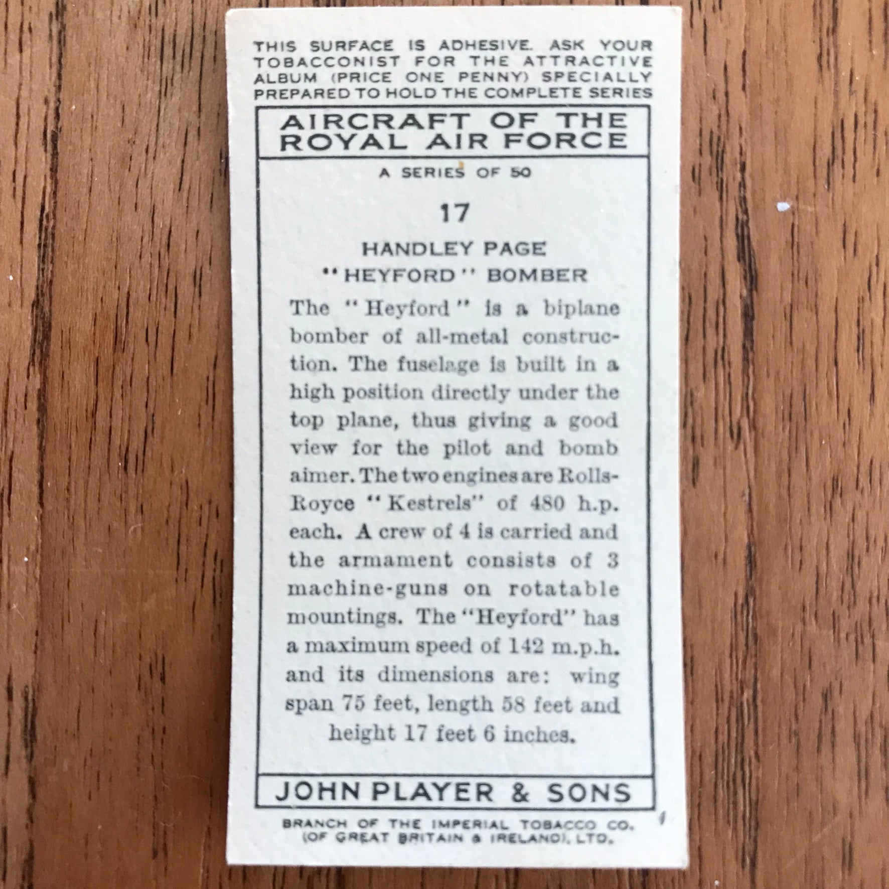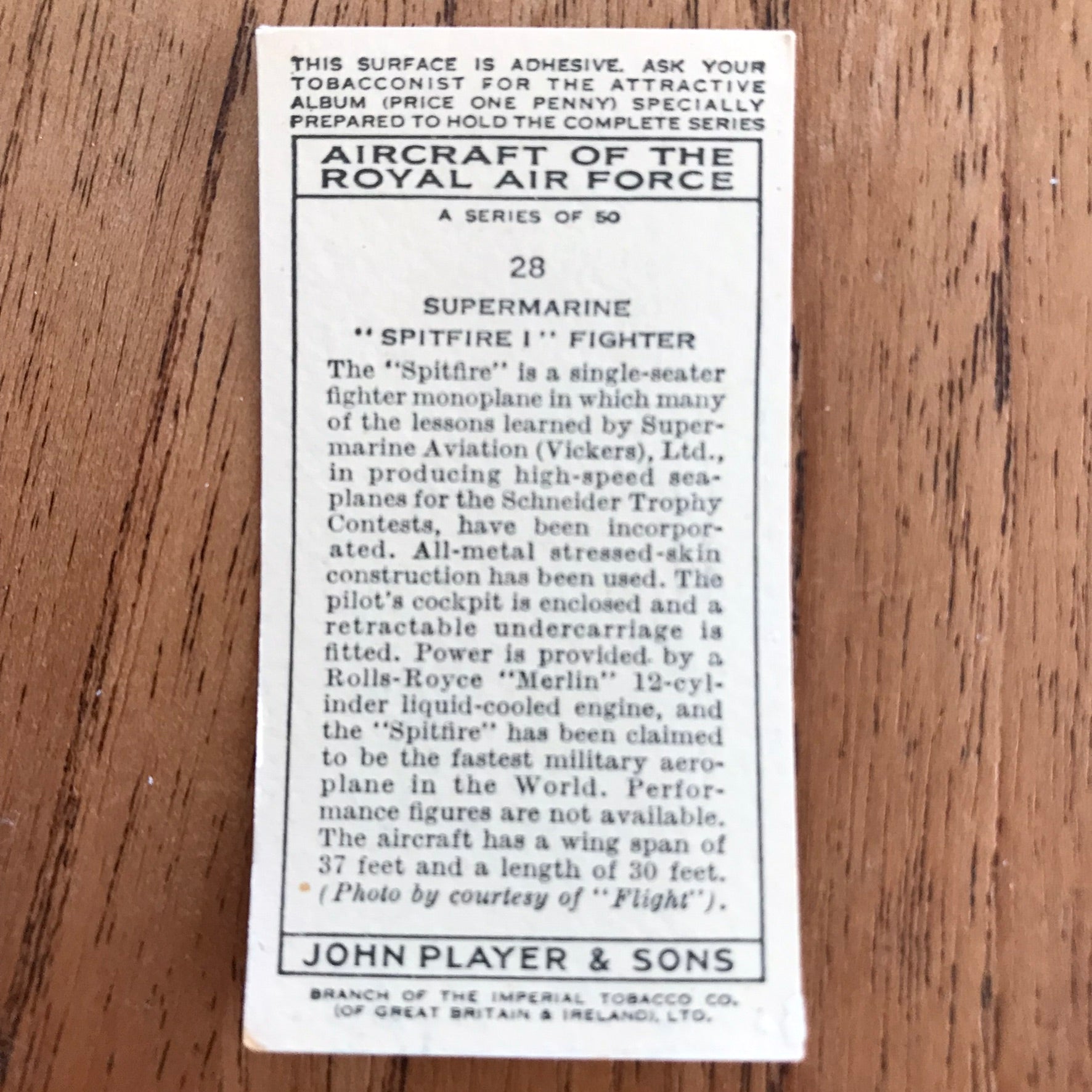 There were 50 cards in total, providing a glimpse into the aviation technology of the 1930s.