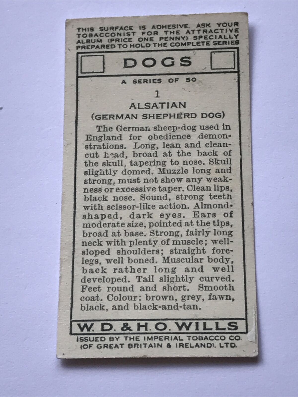 Alsatian WILLS CIGARETTE CARD Dogs #1 Arthur Wardle Picture