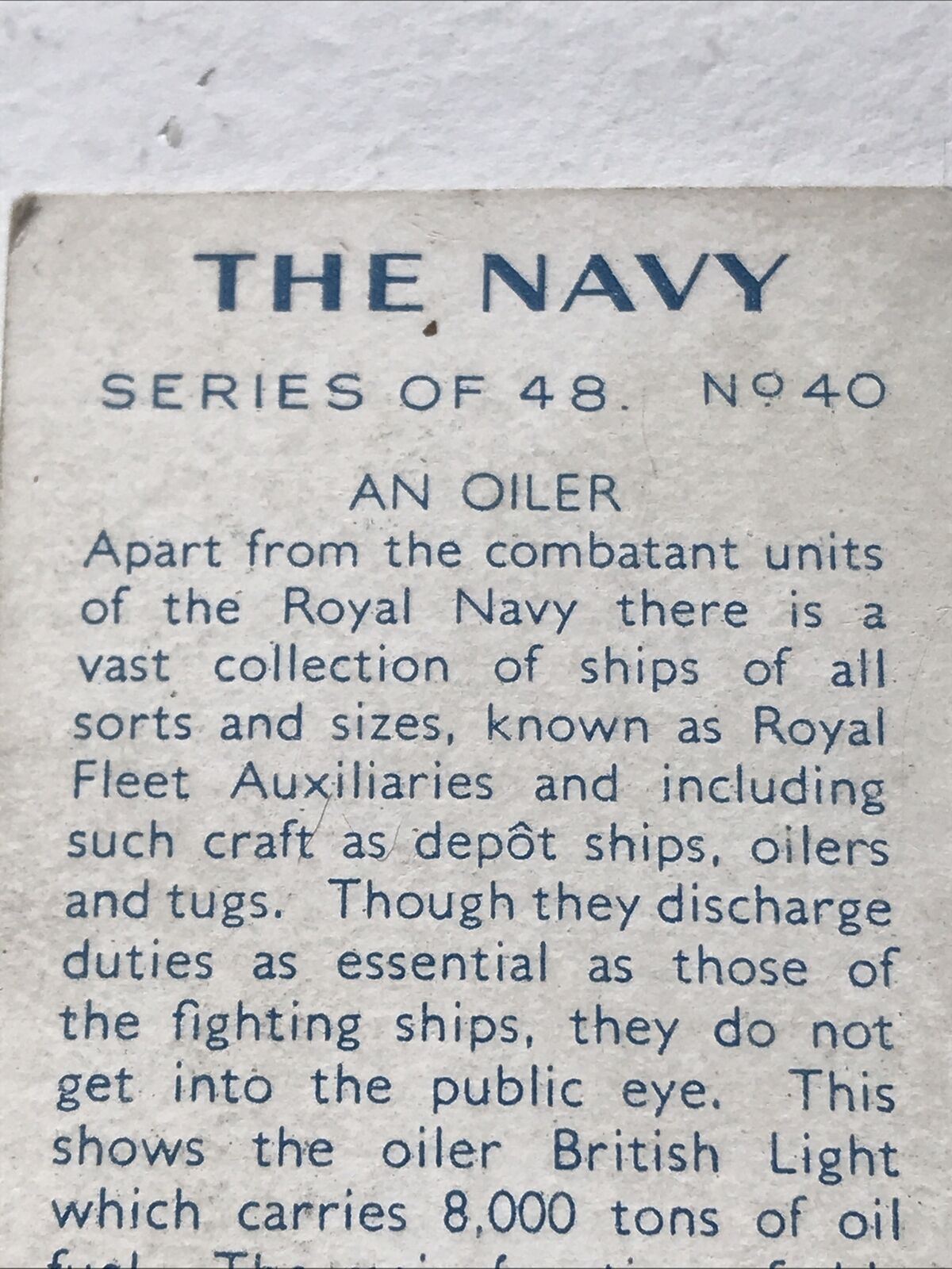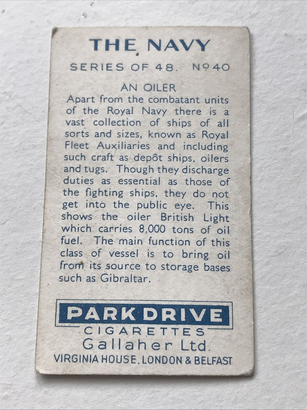 AN OILER SHIP Park Drive Gallaher Cigarette Card The Navy No 40 1937 Royal Fleet
