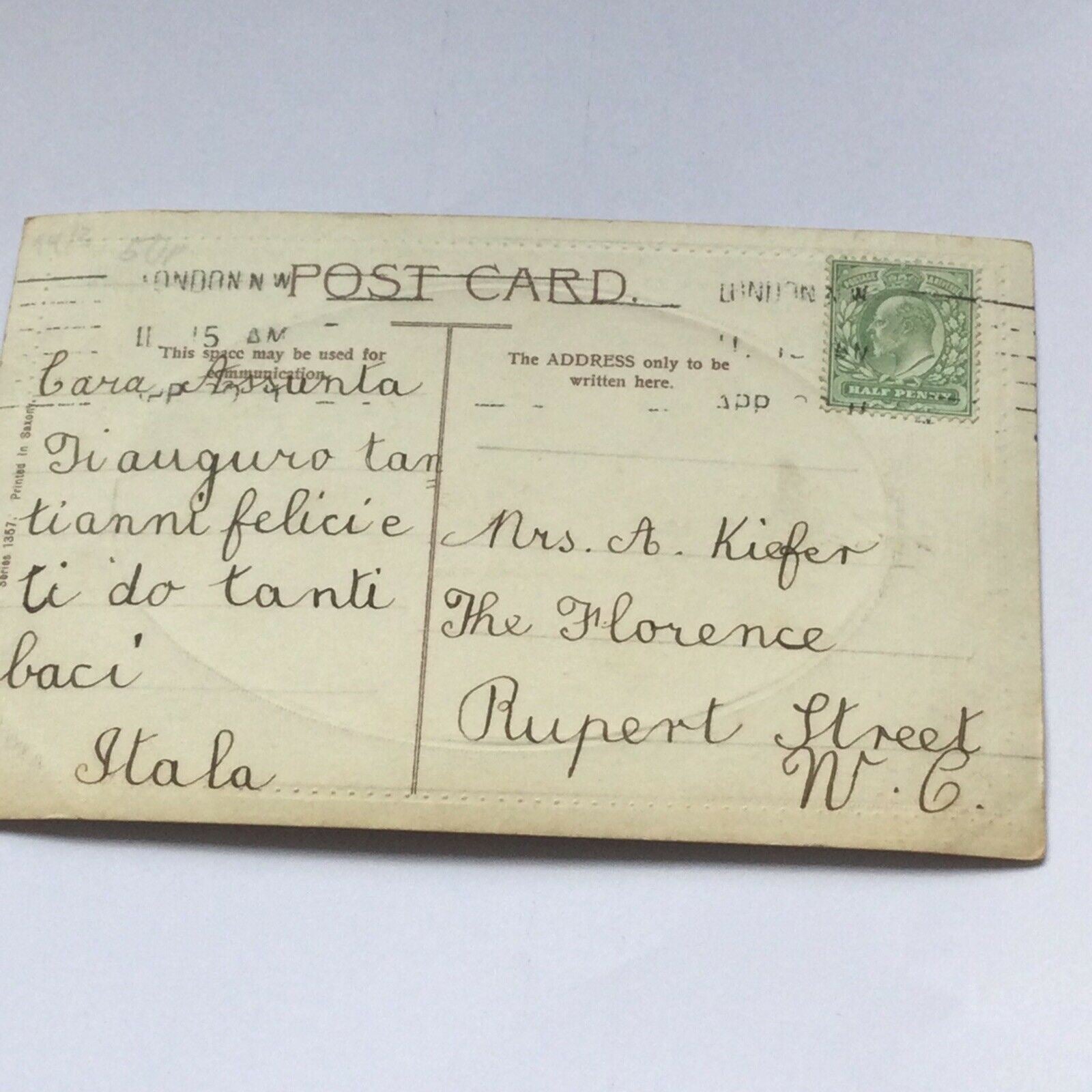 Antique 1900s Birthday Postcard Sent To Hotel Florence, Rupert St Soho