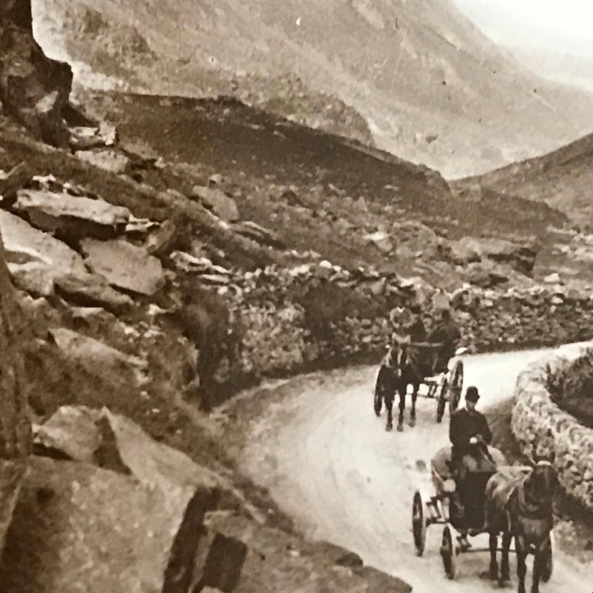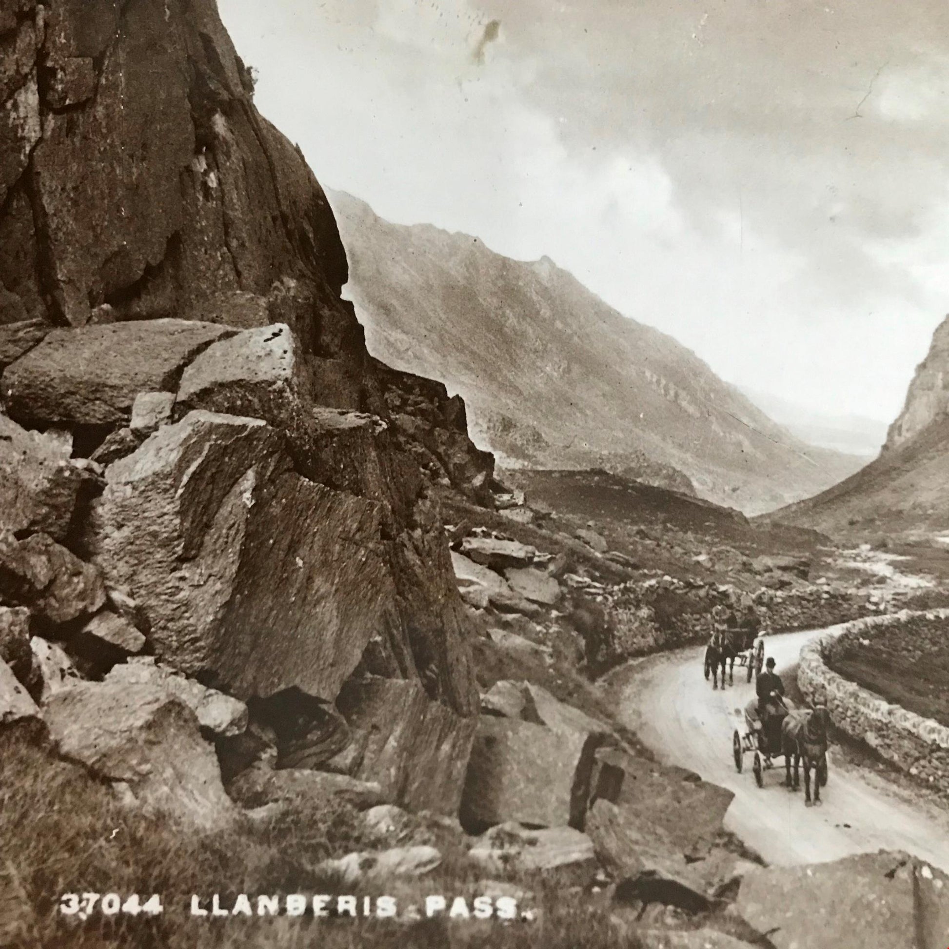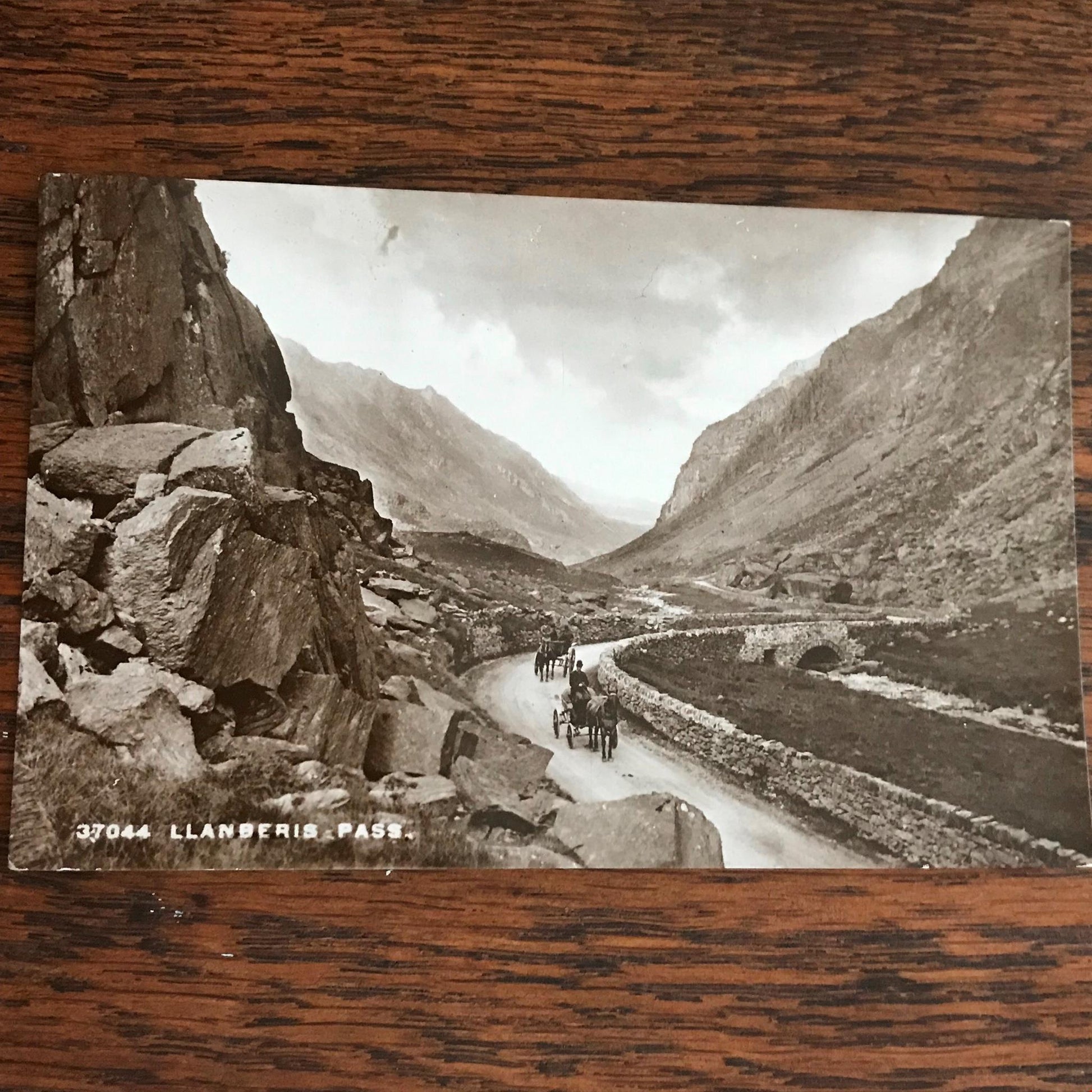 Antique 1913Postcard Wales LLANBERIS PASS horse and carts sepia mountains valley