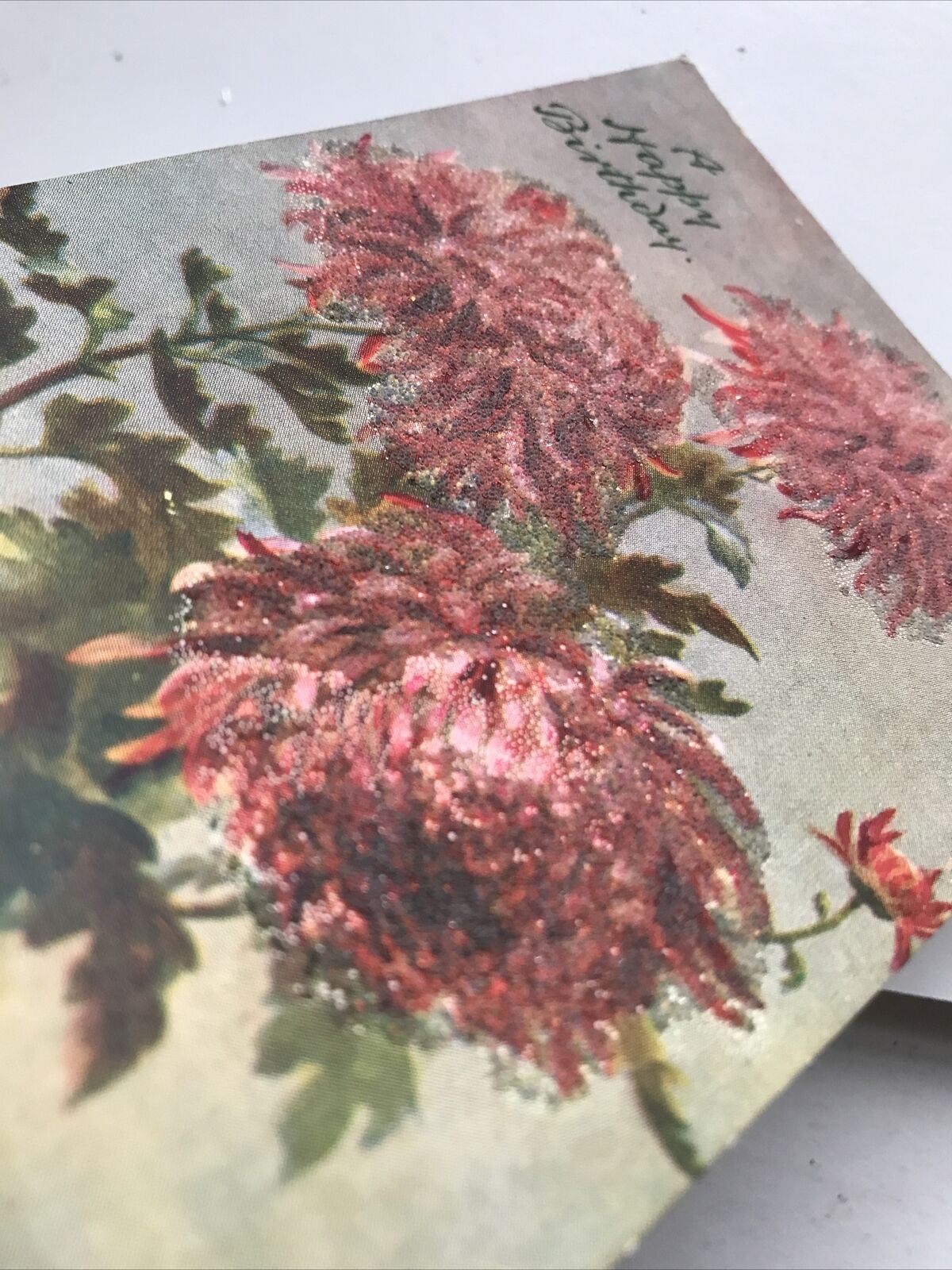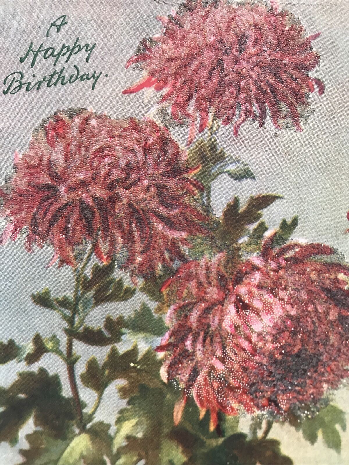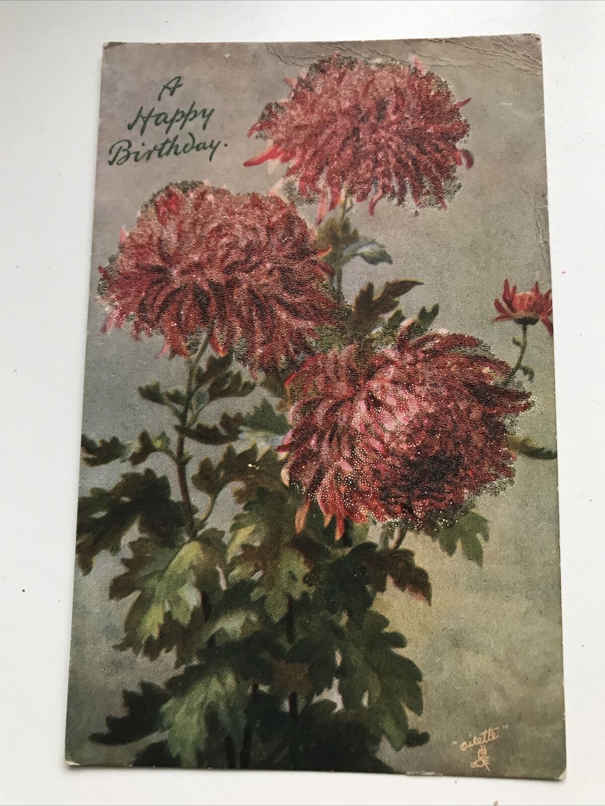 Antique Birthday Greetings Postcard 1907 Sparkly Textured Flowers TUCKS OILETTE.