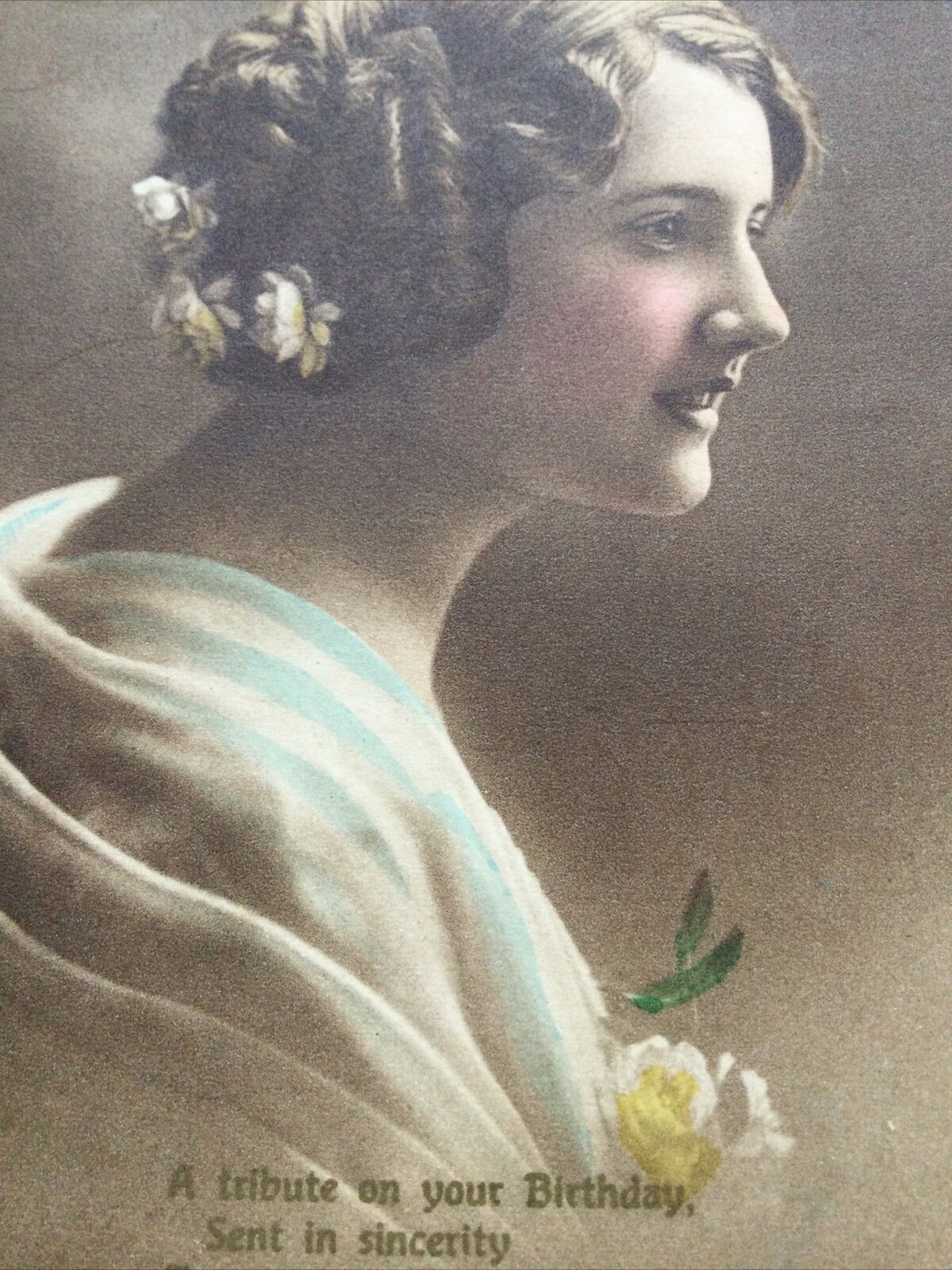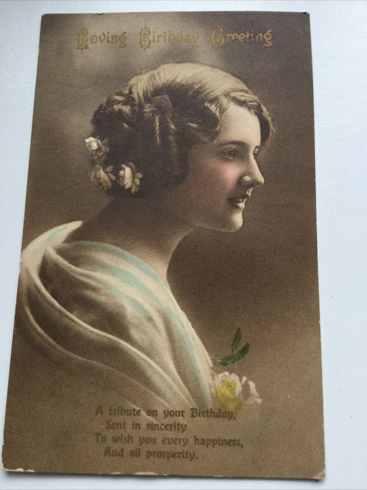 Antique Birthday Greetings Postcard Beautiful Woman Sepia Tinted Nice Poem