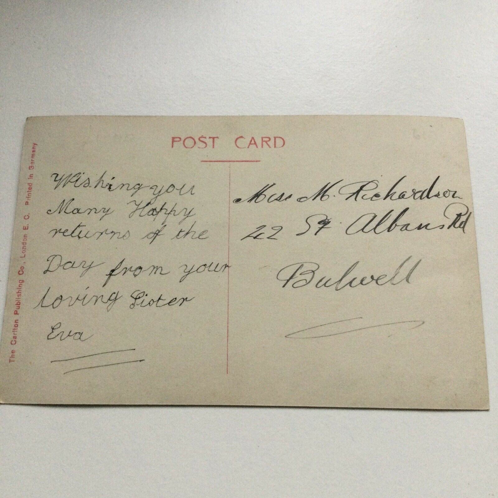 Antique Birthday Greetings Postcard Beautiful Woman With Lilac Flowers Carlton