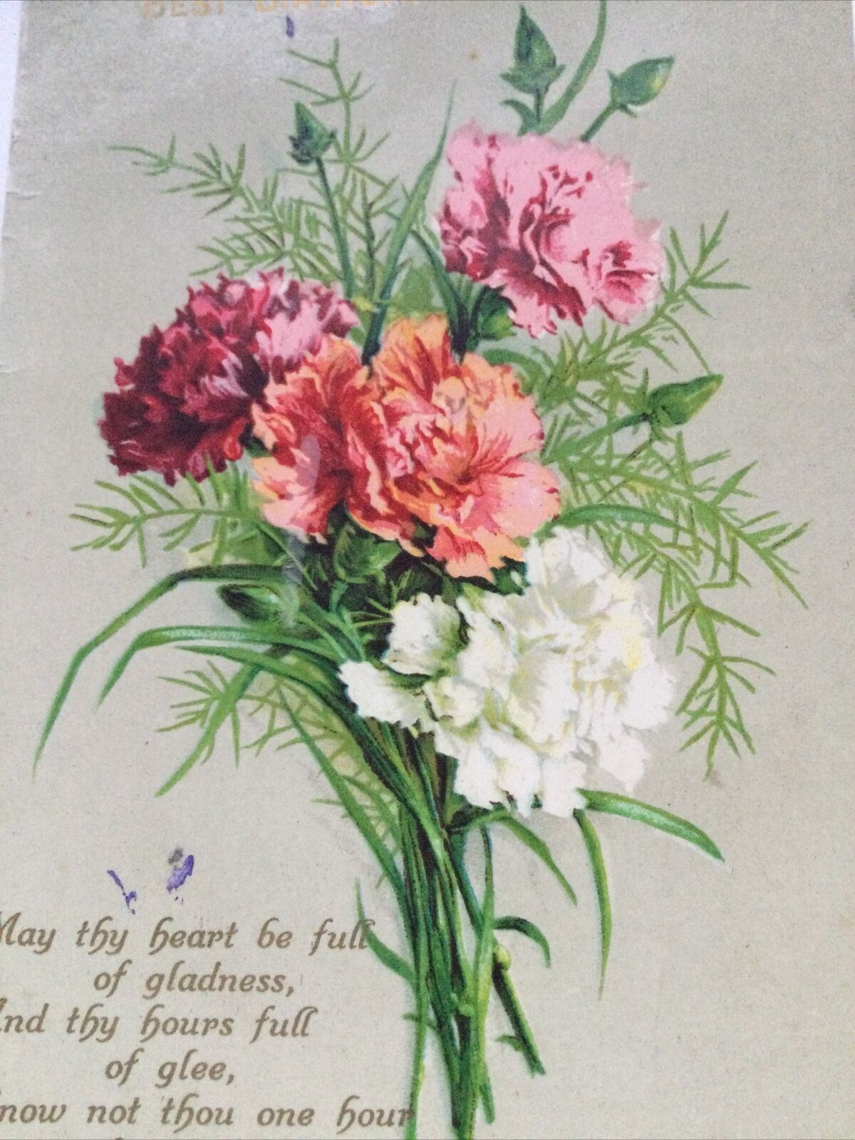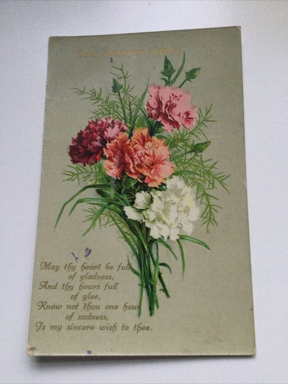Antique Birthday Greetings Postcard Flowers Carnations Nice Poem Best Wishes