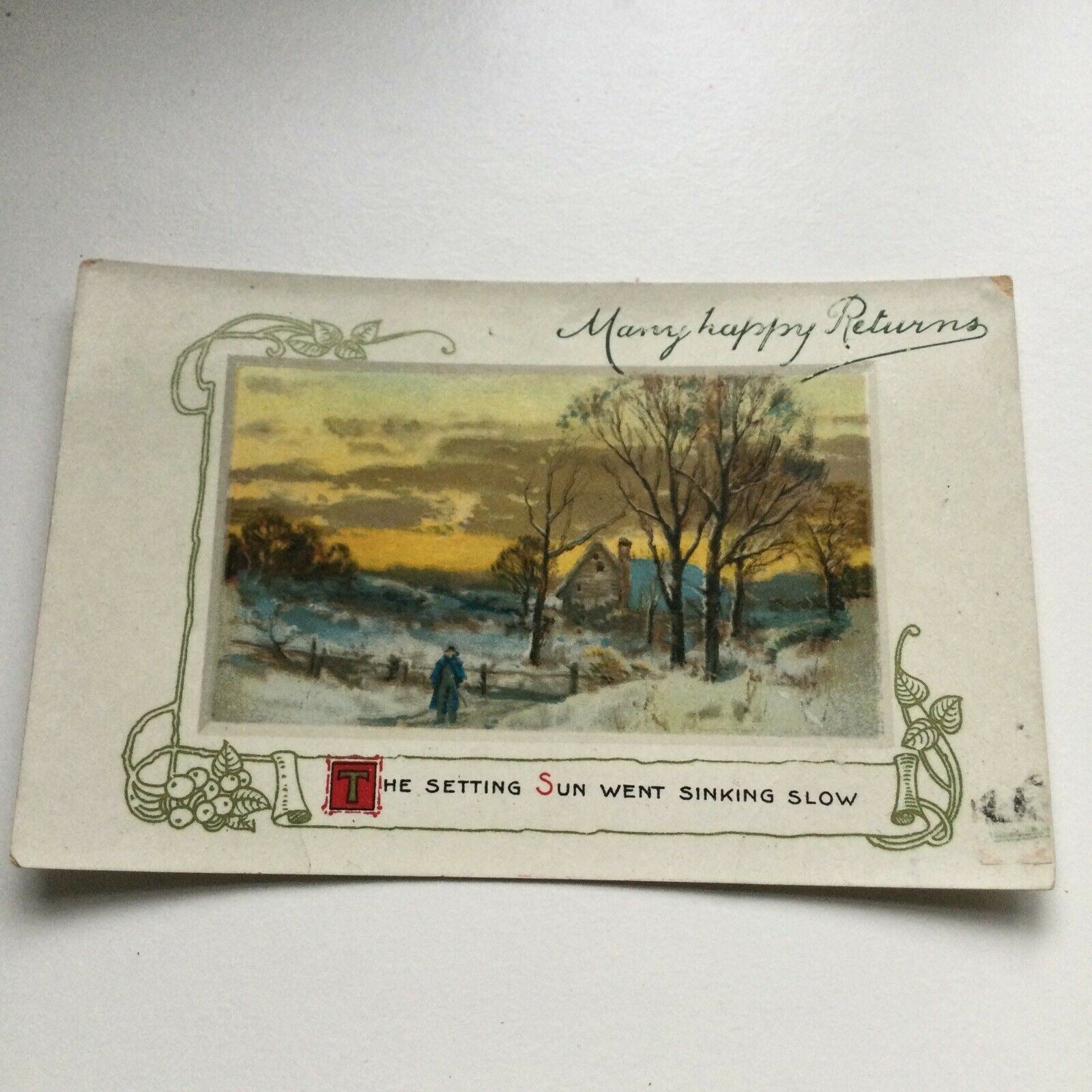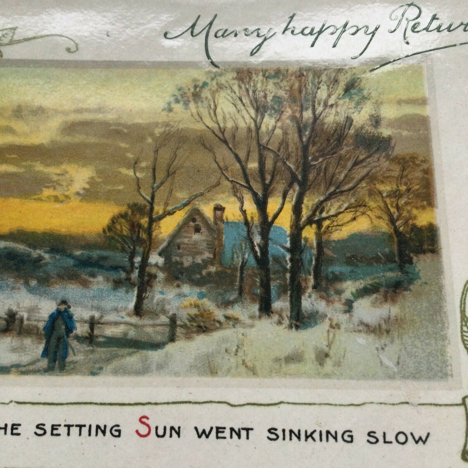 Antique Birthday Greetings Postcard Scenic Sunset With Snow Countryside WILOT