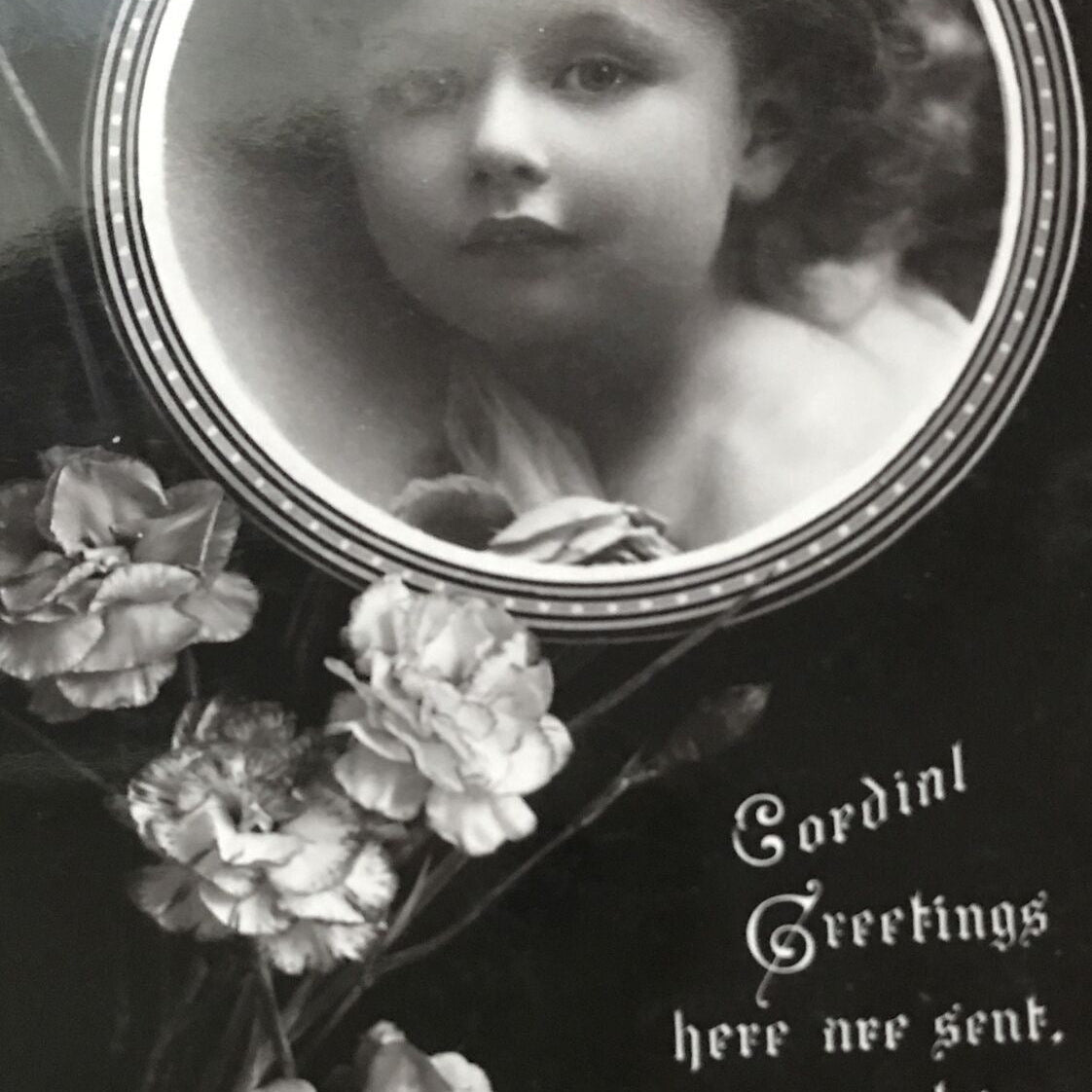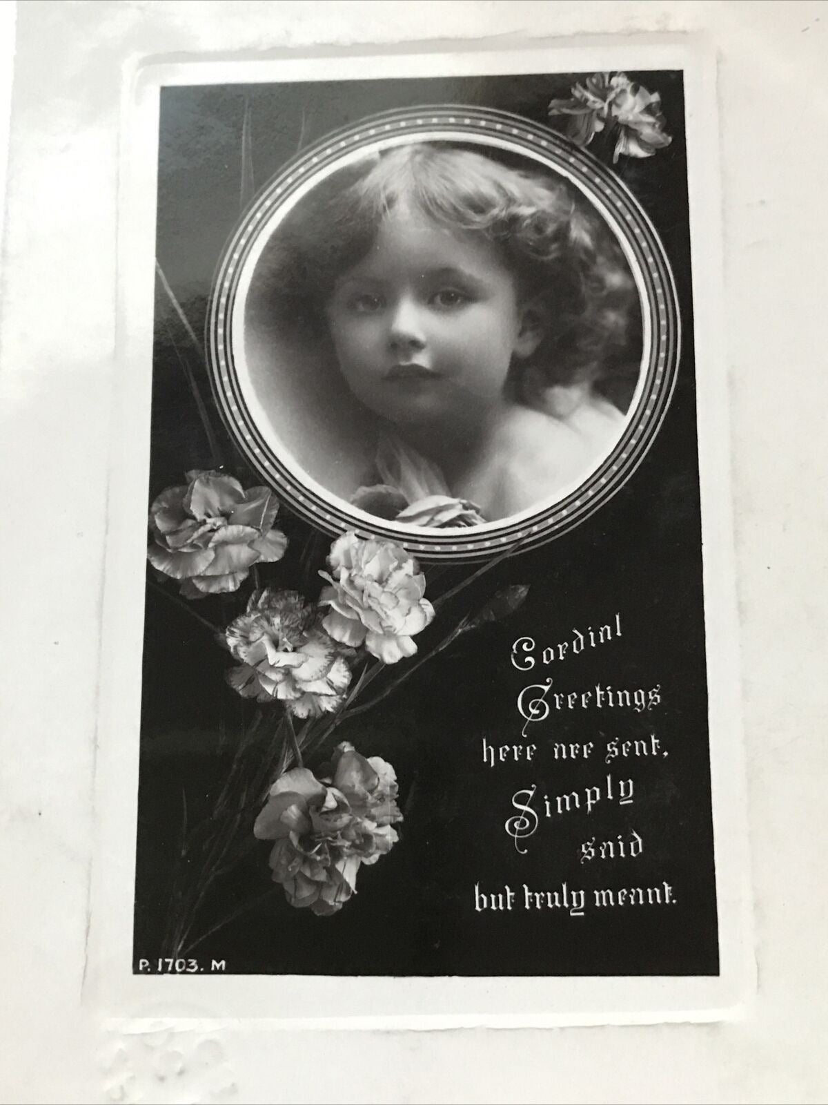 Antique Greetings Postcard RP Sweet Girl With Flowers ‘Cordial Greetings’ 1908