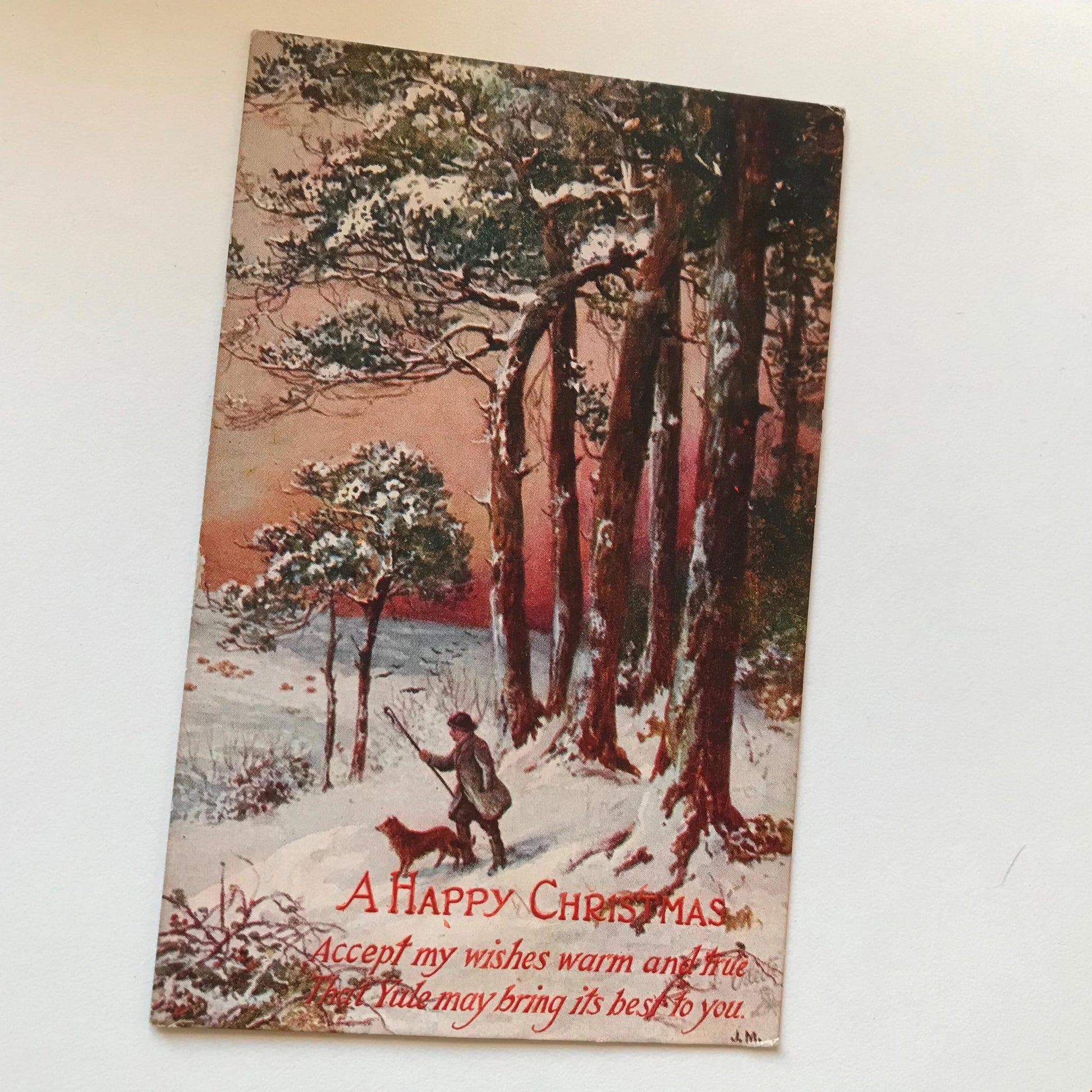 Antique HAPPY CHRISTMAS Greetings Postcard 1917 snowy woodland scene shepherd
