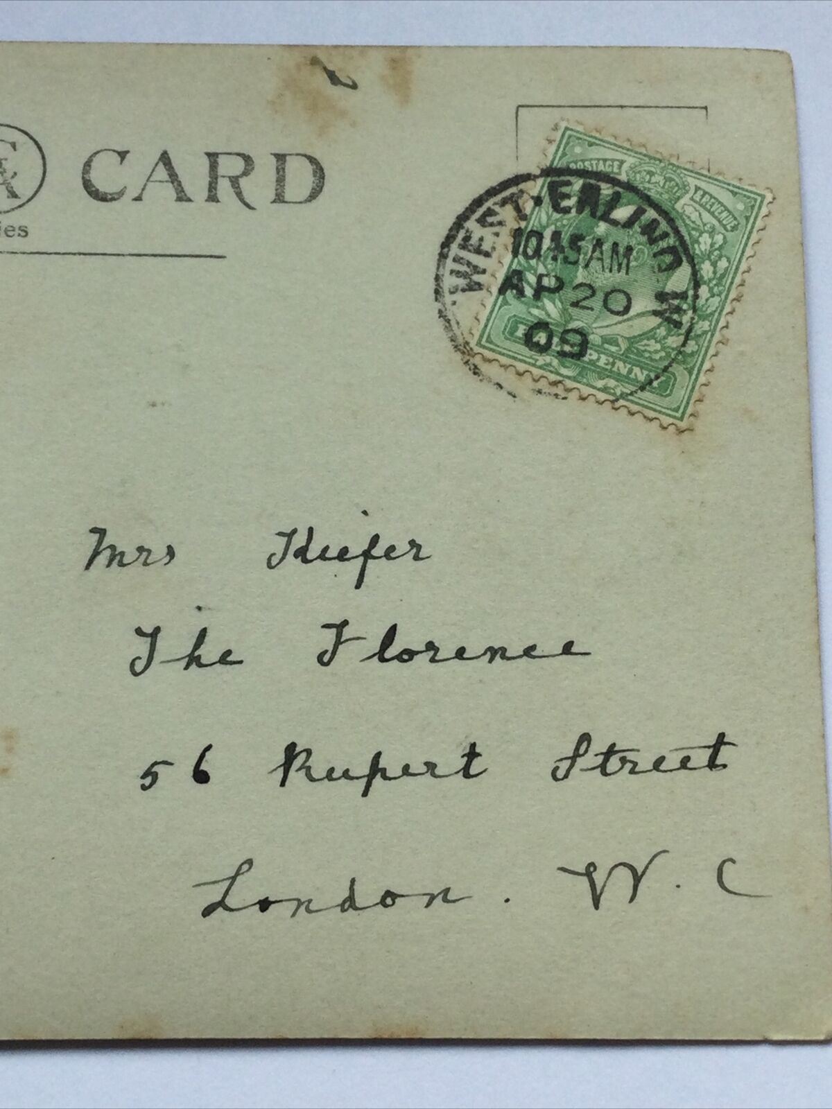 Vintage Postcard Sent To The Florence Italian Restaurant, Rupert St Soho 1909 Asunta.