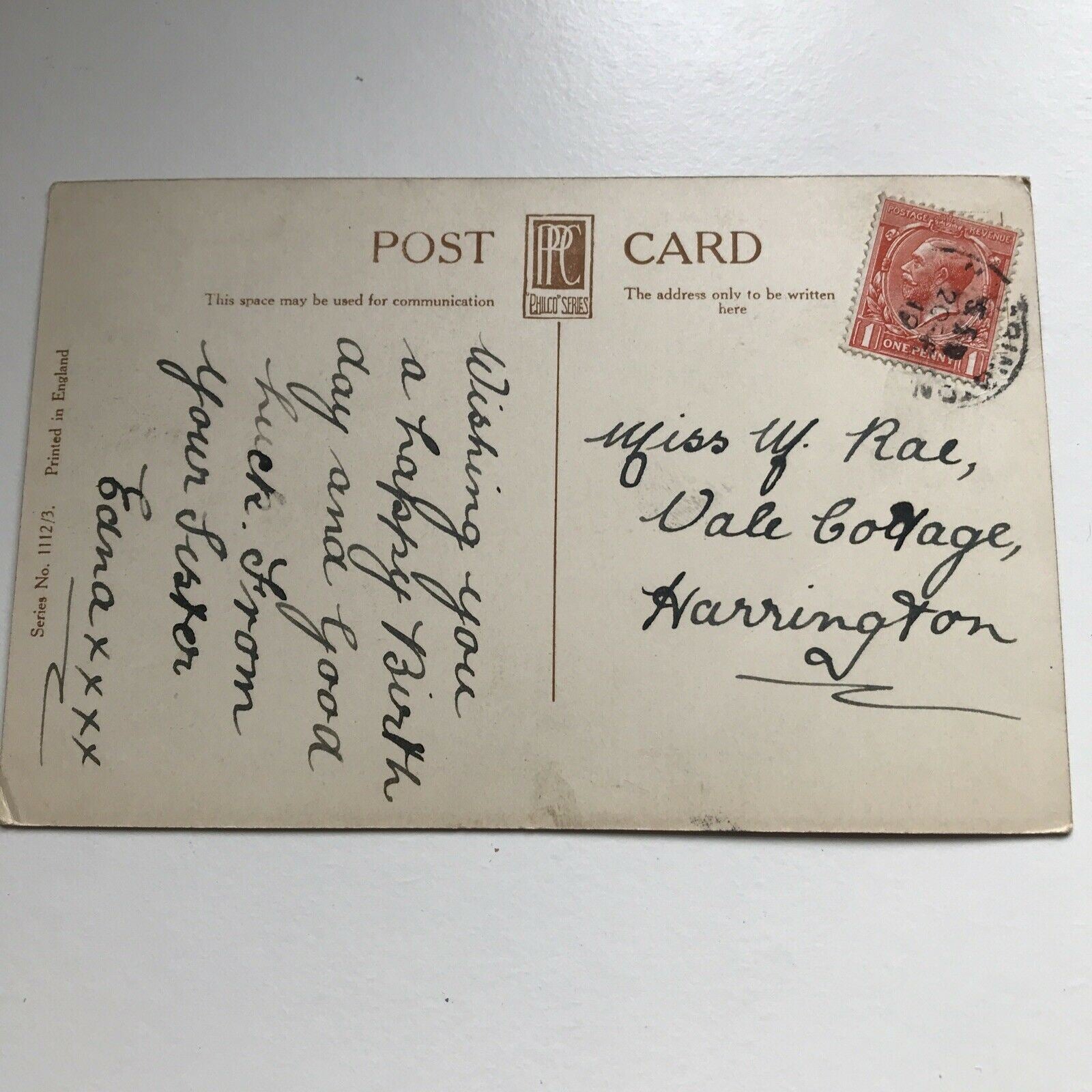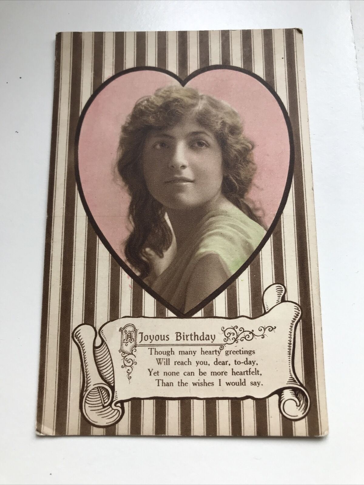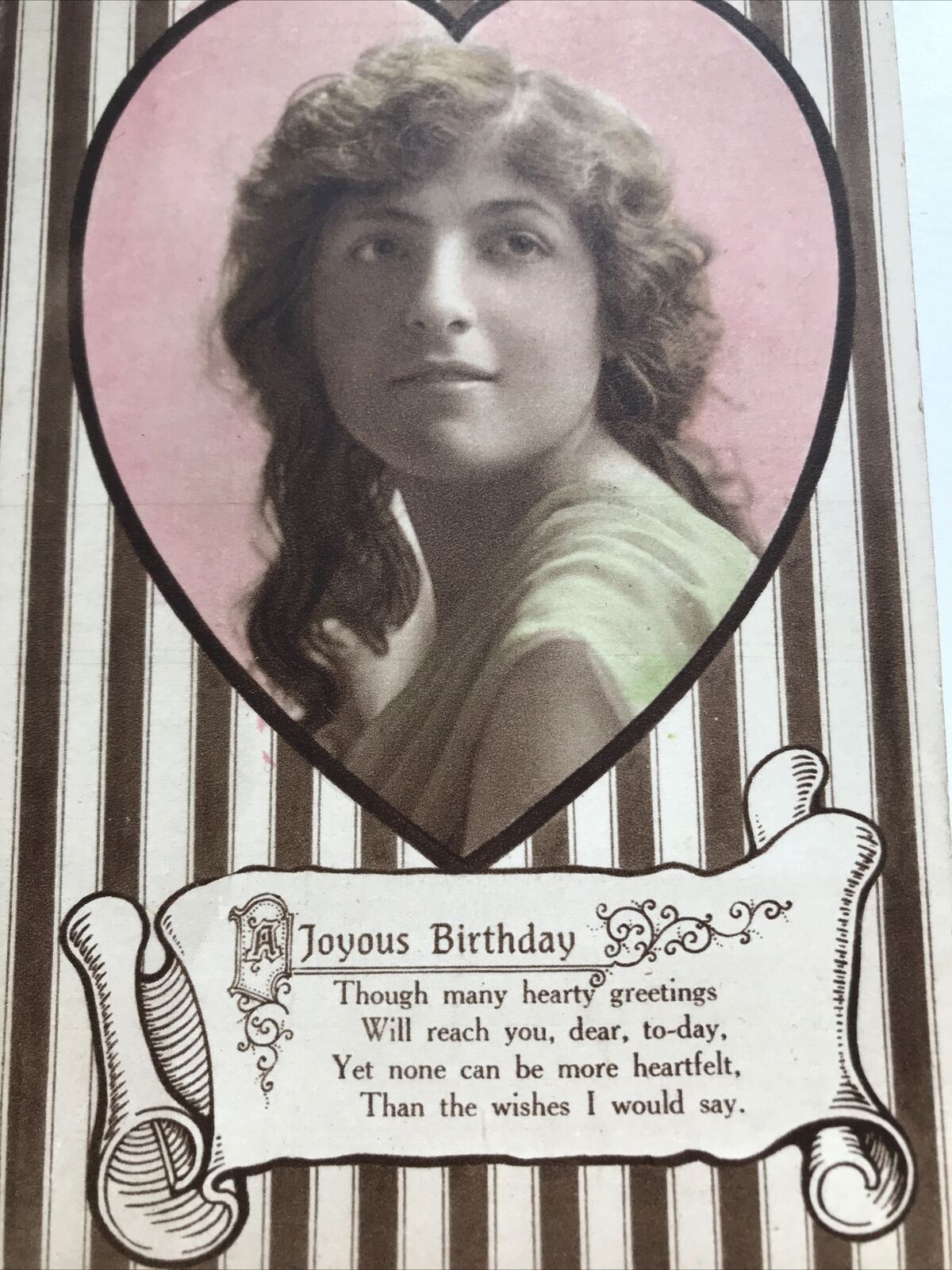 Antique Tinted Sepia POSTCARD HAPPY BIRTHDAY. Pretty Woman & Nice Poem 1919. Pink heart design.