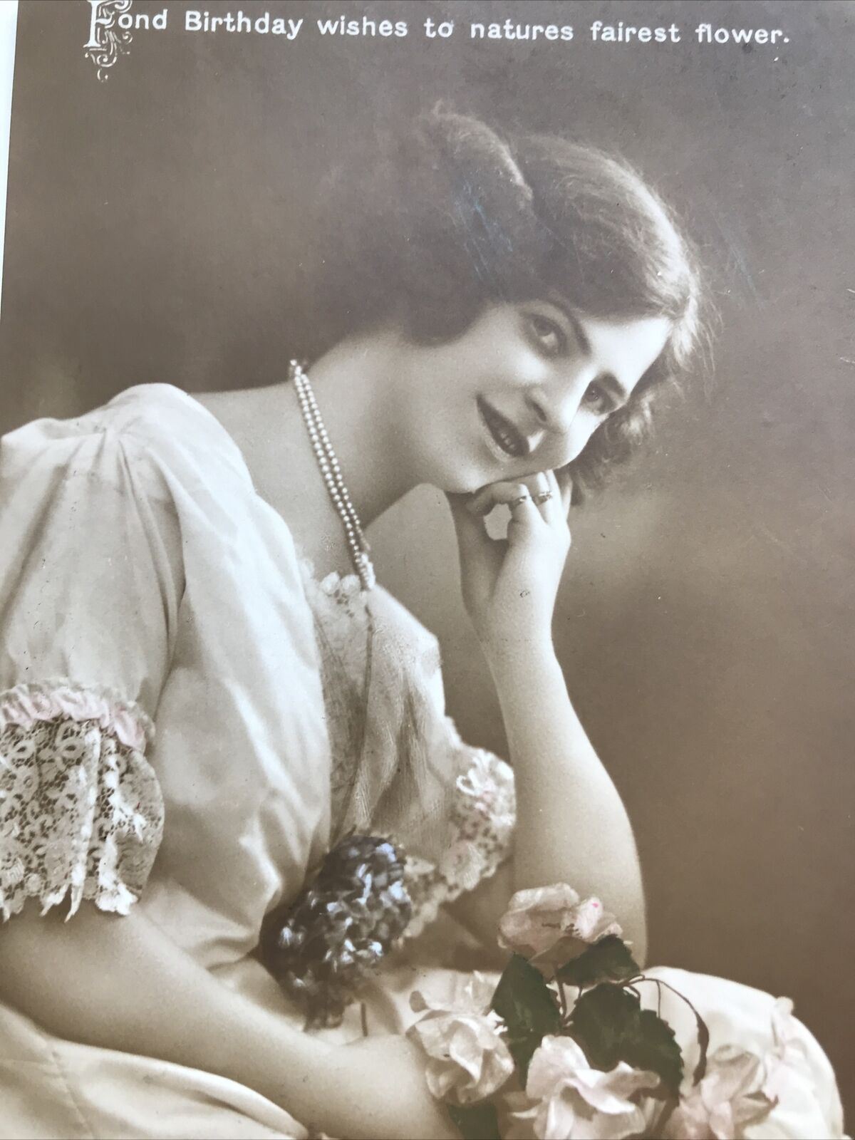 Antique Tinted Sepia RP POSTCARD HAPPY BIRTHDAY. Pretty Woman & Nice Poem 1913