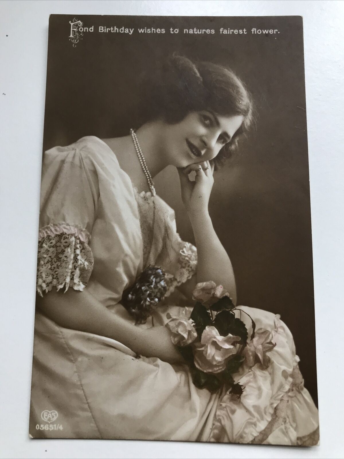 Vintage Tinted Sepia RP POSTCARD HAPPY BIRTHDAY. Pretty Woman & Nice Poem