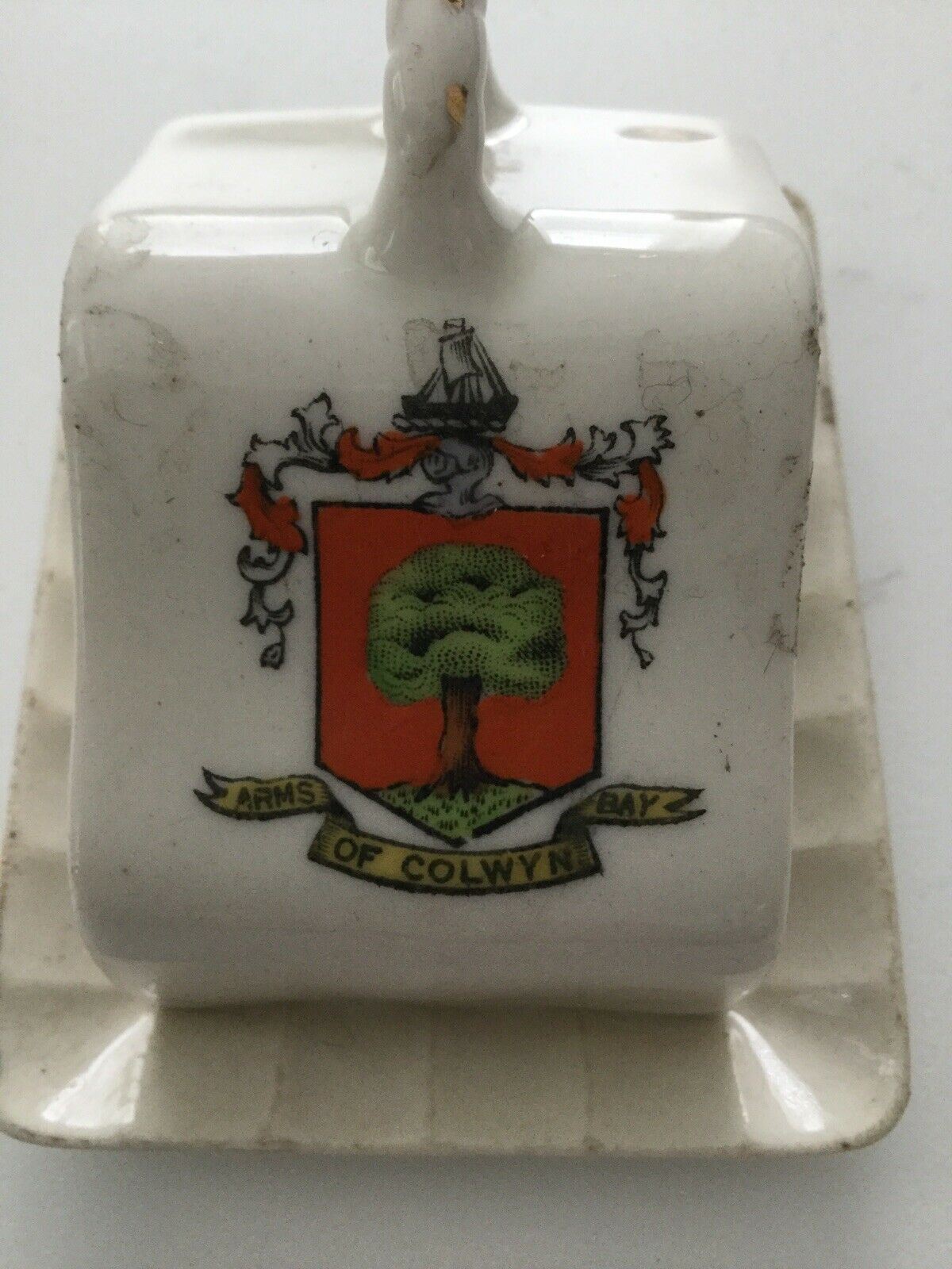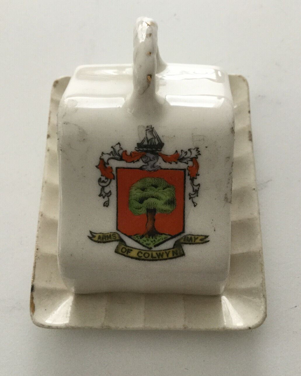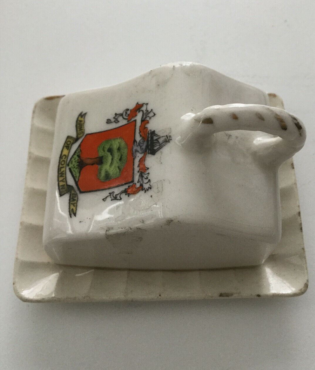 Arms Of Colwyn Bay Collectible Miniature Butter Dish. Wales. Vintage China.