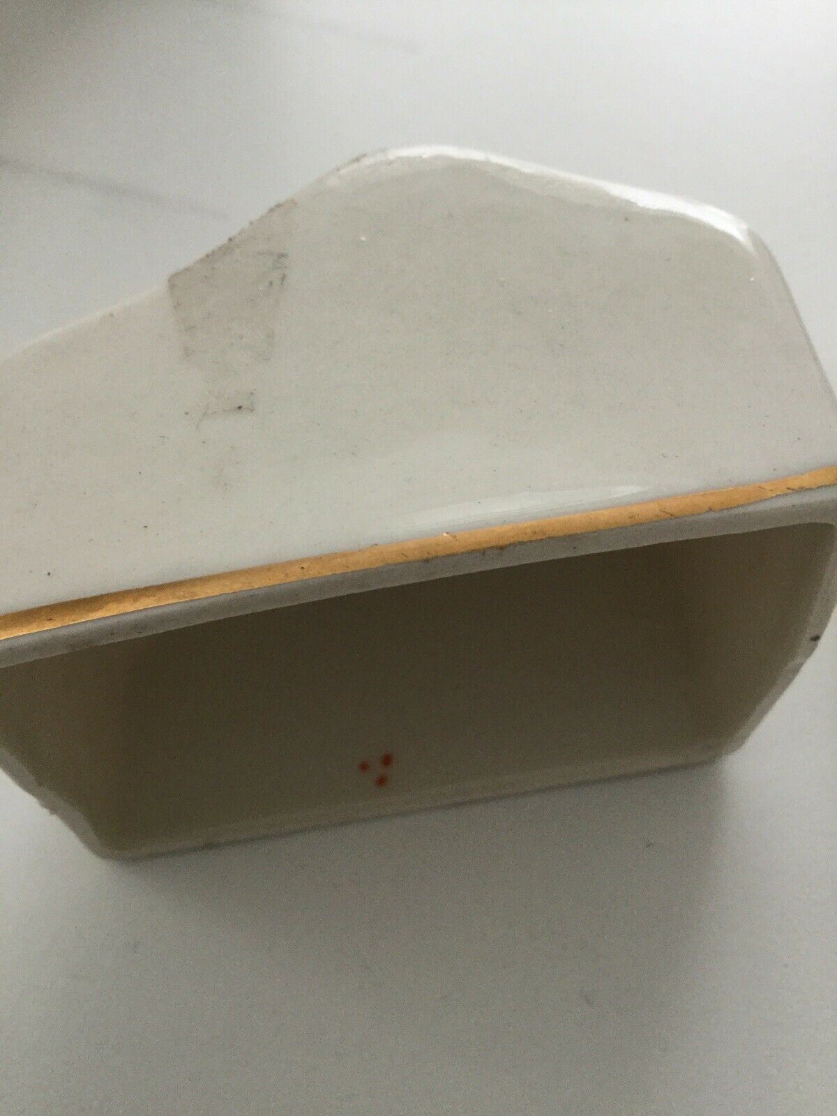 Some crazing, chips to the glaze, and a lot of the gold has worn off.