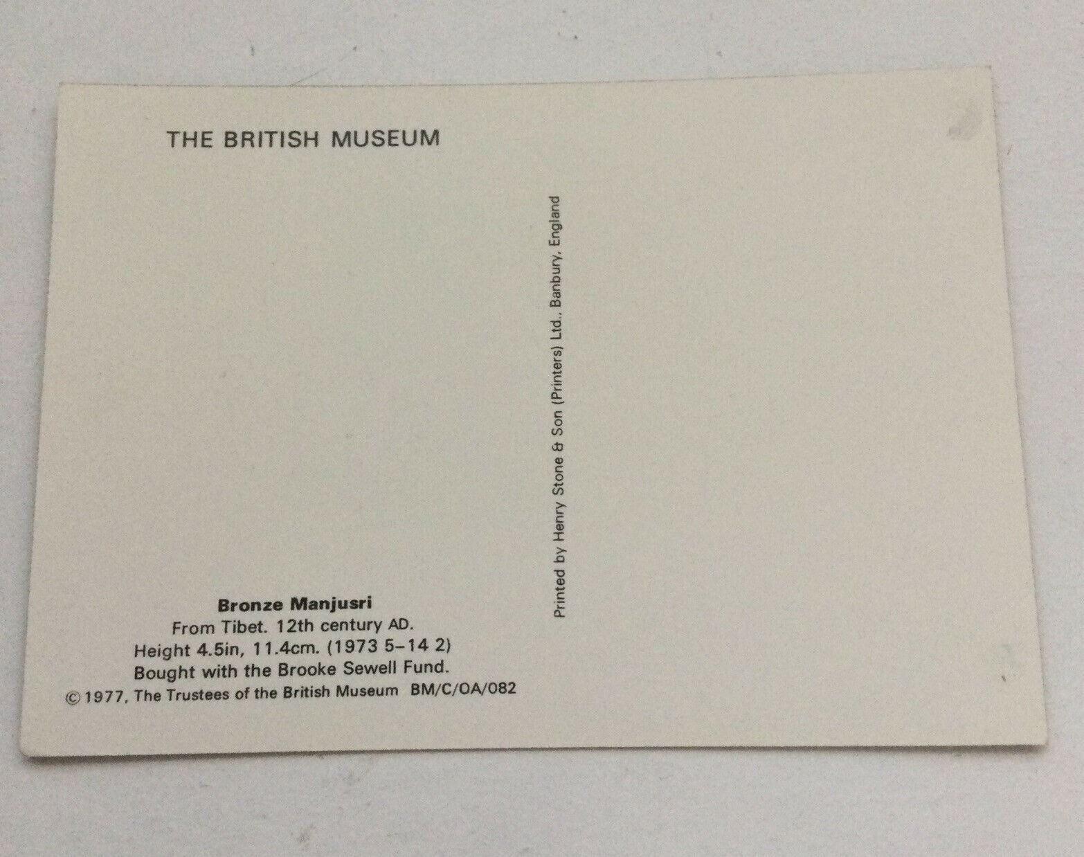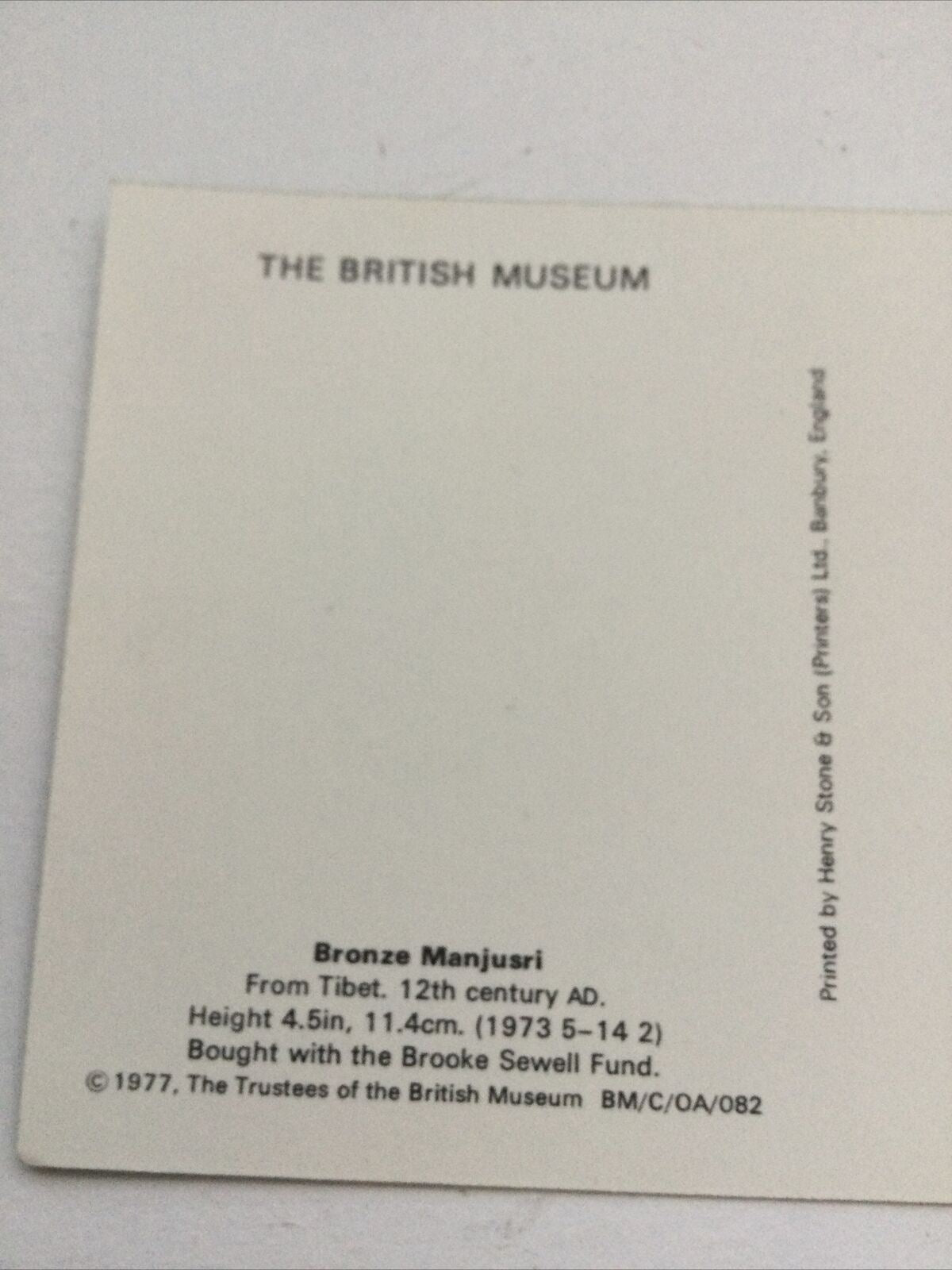 Art Postcard. British Museum. Bronze Manjusri Statue. Tibet. 12th Century.. Condition is "Used". Dispatched with Royal Mail 2nd Class.