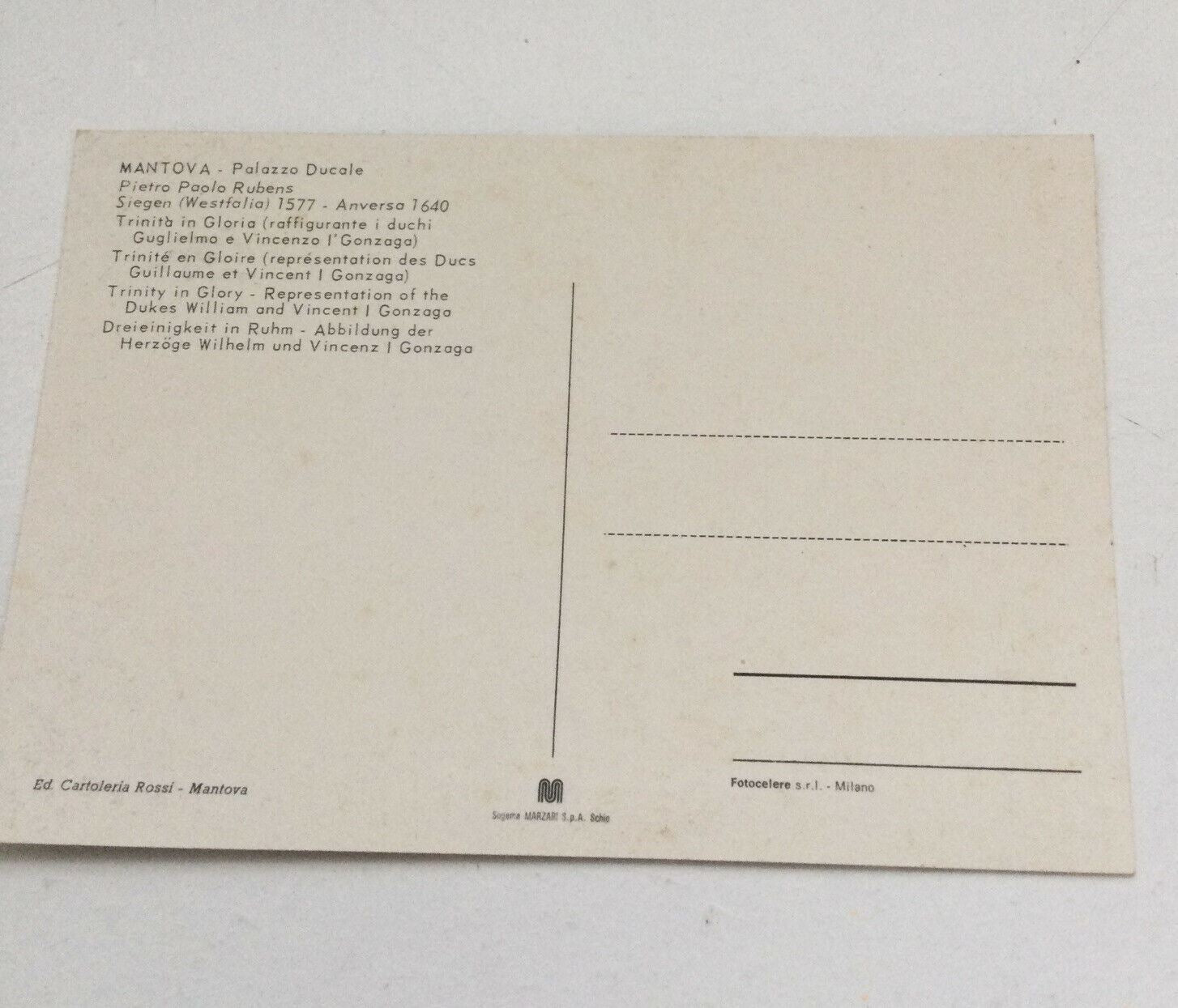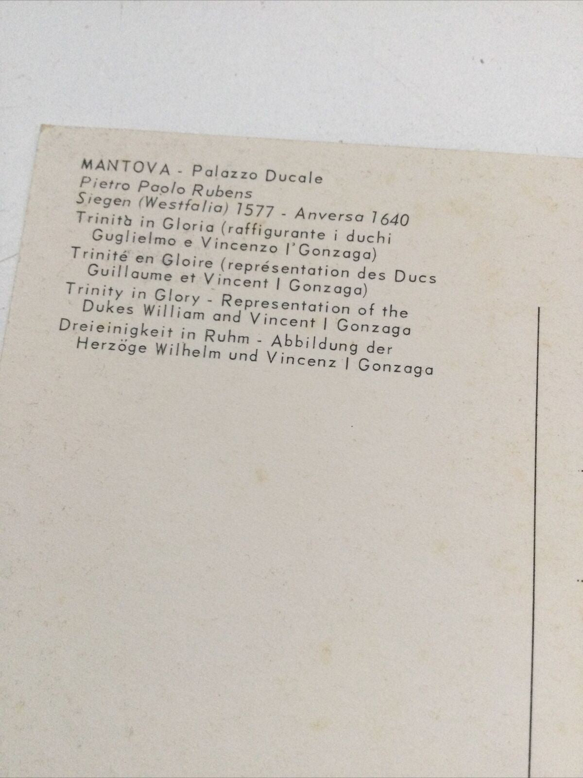 Art Postcard Rubens Palazzo Ducale Mantova Trinity In Glory Duke William Vincent. Condition is "Used". Dispatched with Royal Mail 2nd Class Letter.