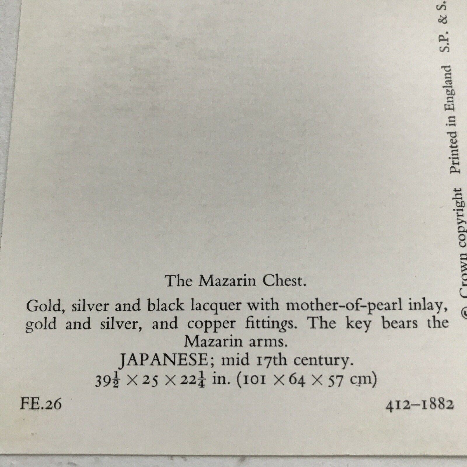 Art Postcard V&A Museum Mazarin Chest Japanese Mid 17th Century Gold Silver Blac