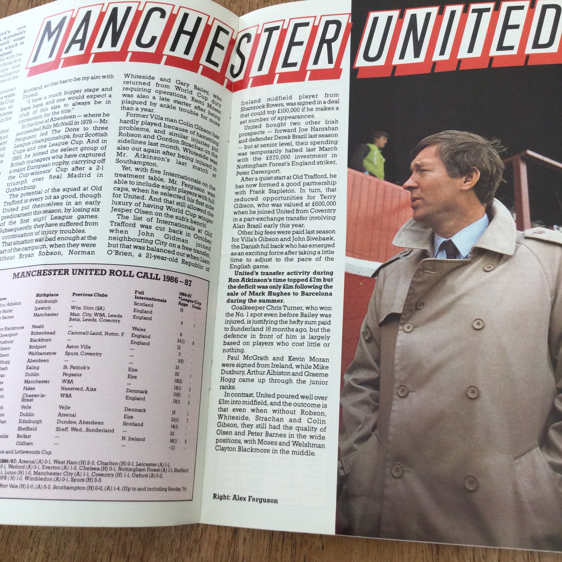 Aston Villa v Manchester Utd Football Programme 1986 13/12/86. Dean Glover feature. Steve Hodge.