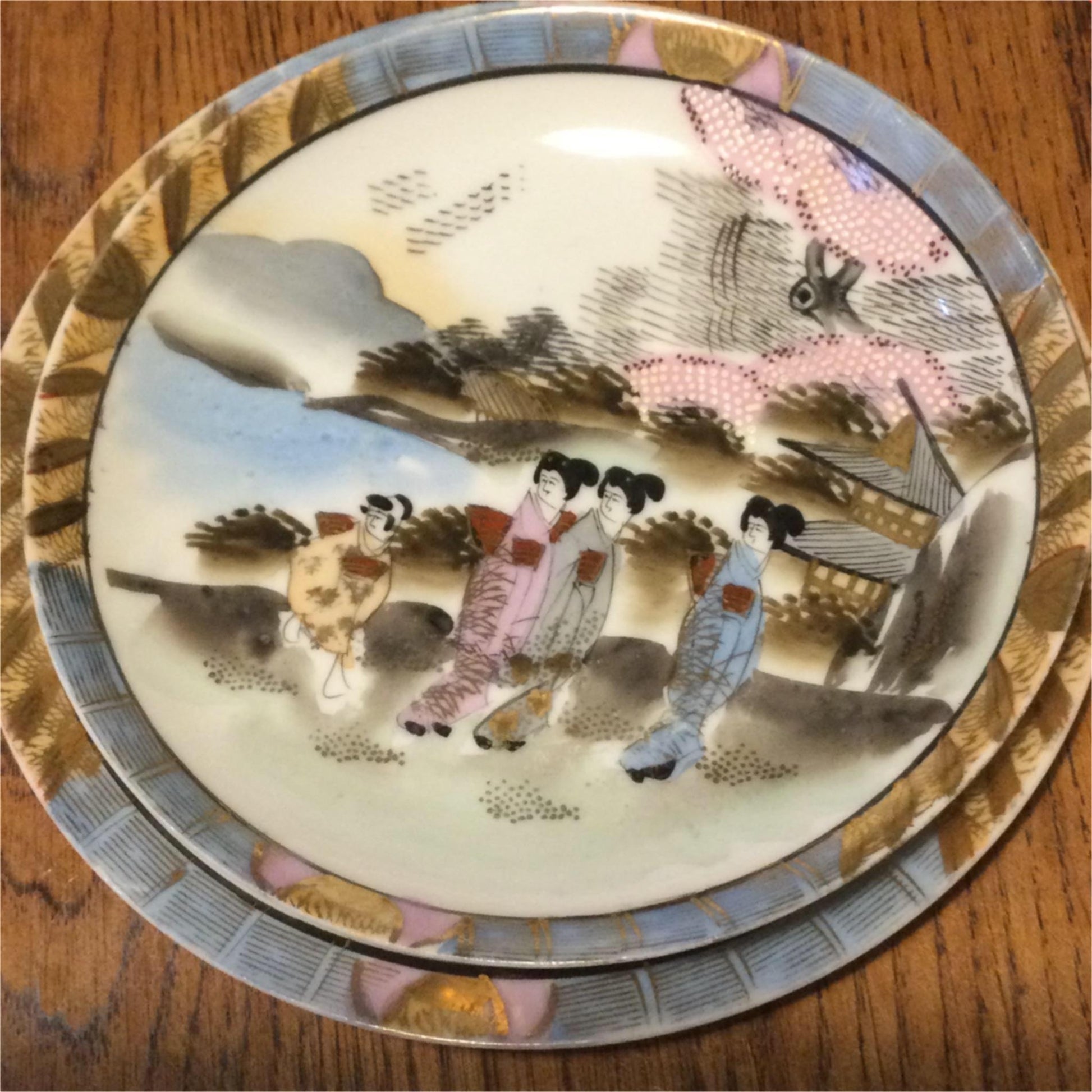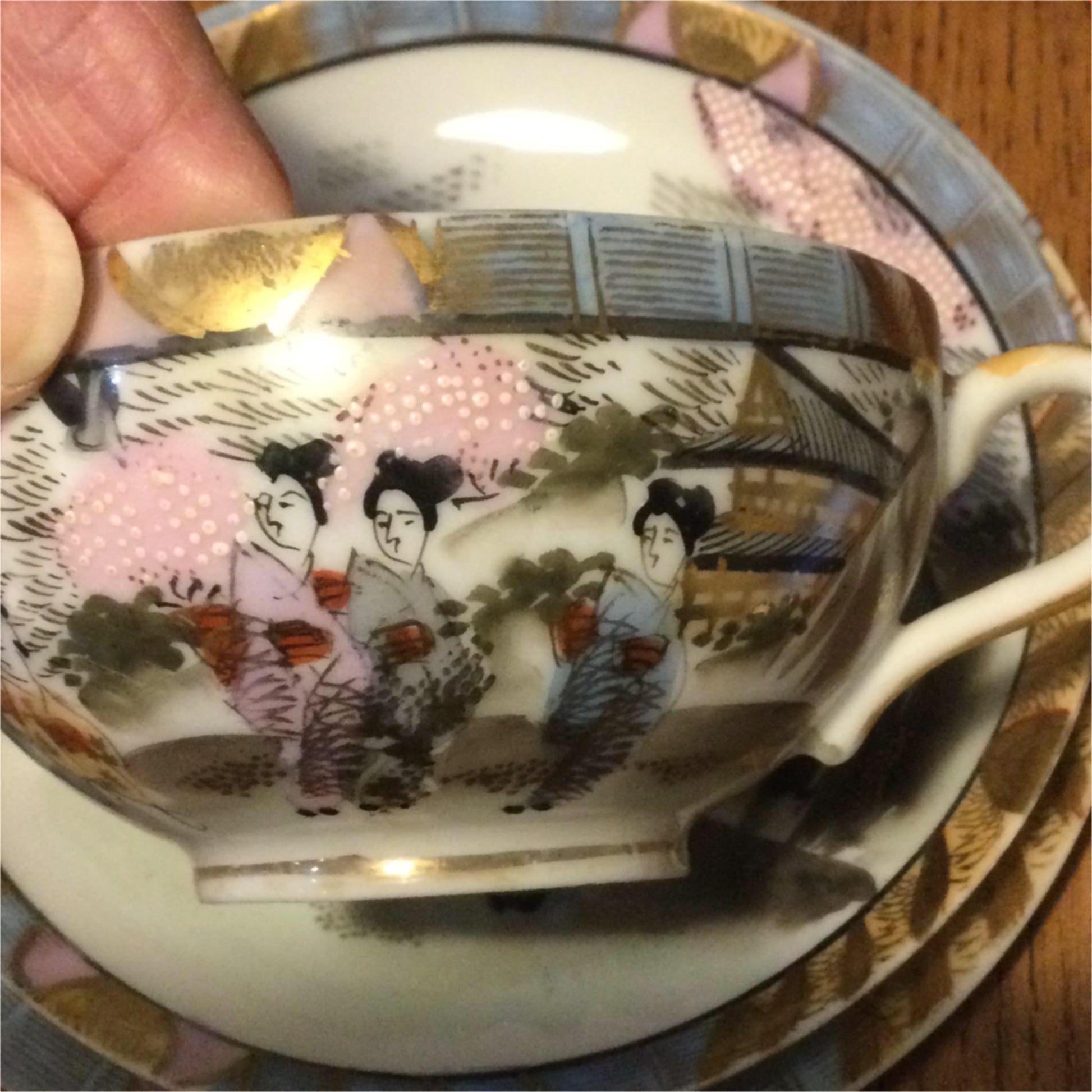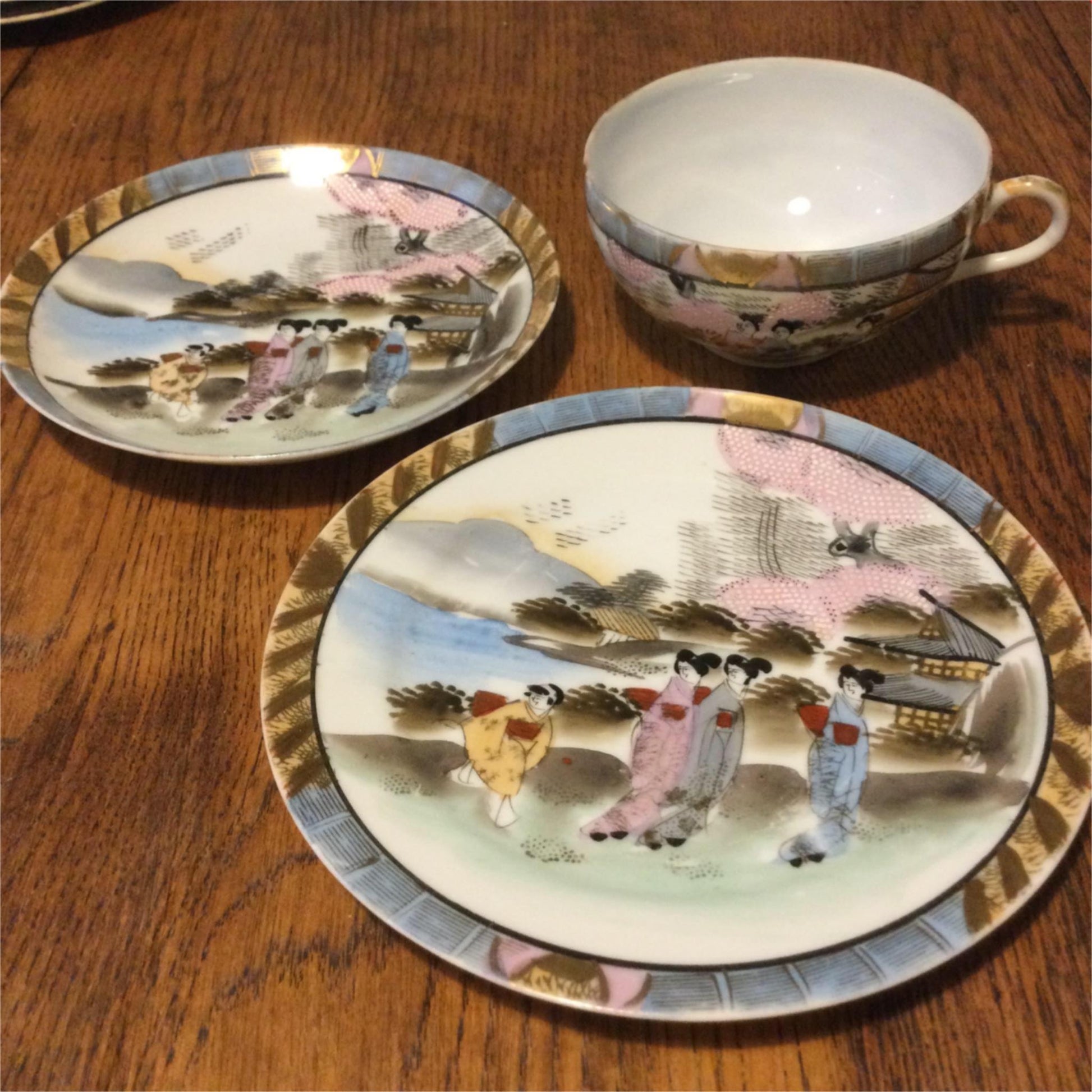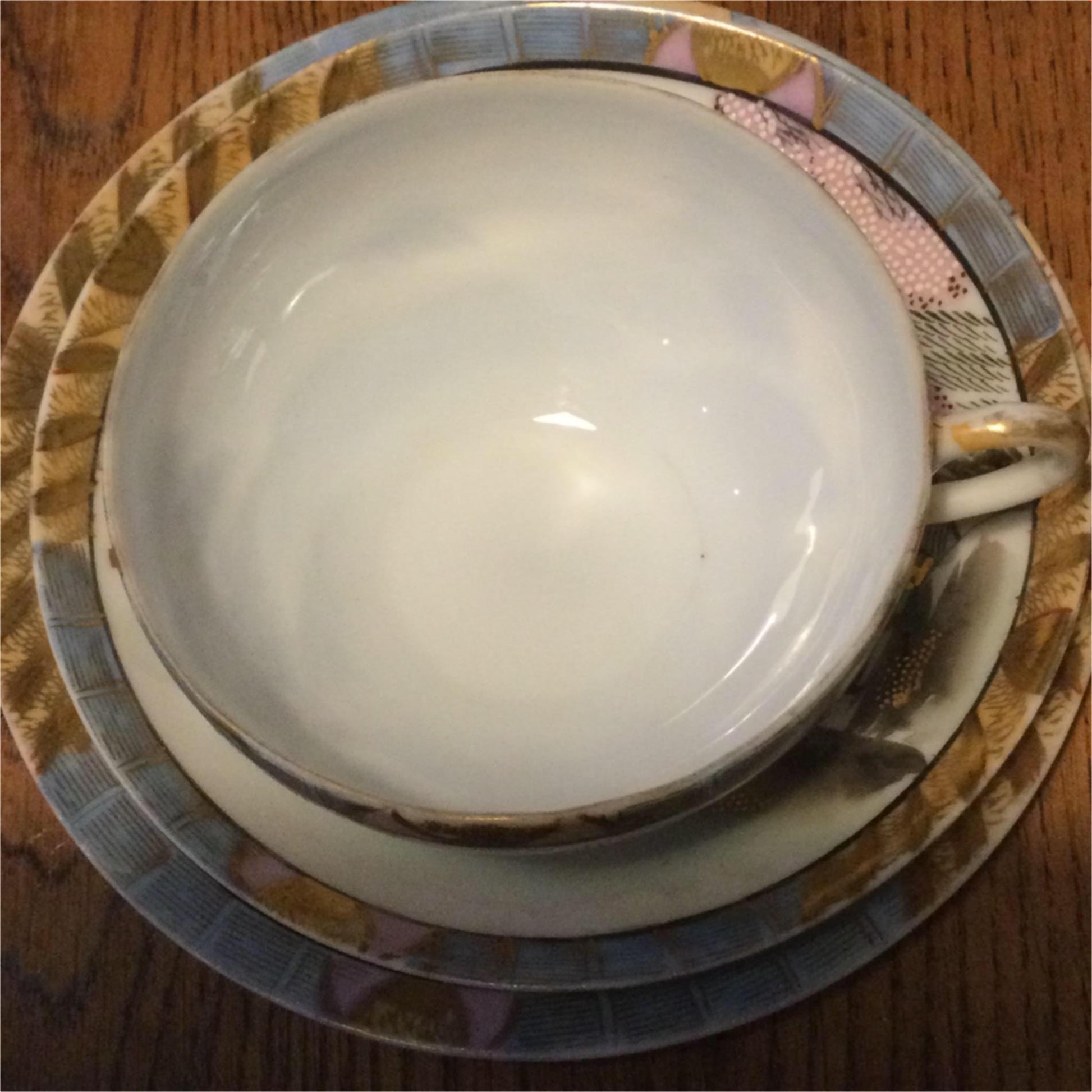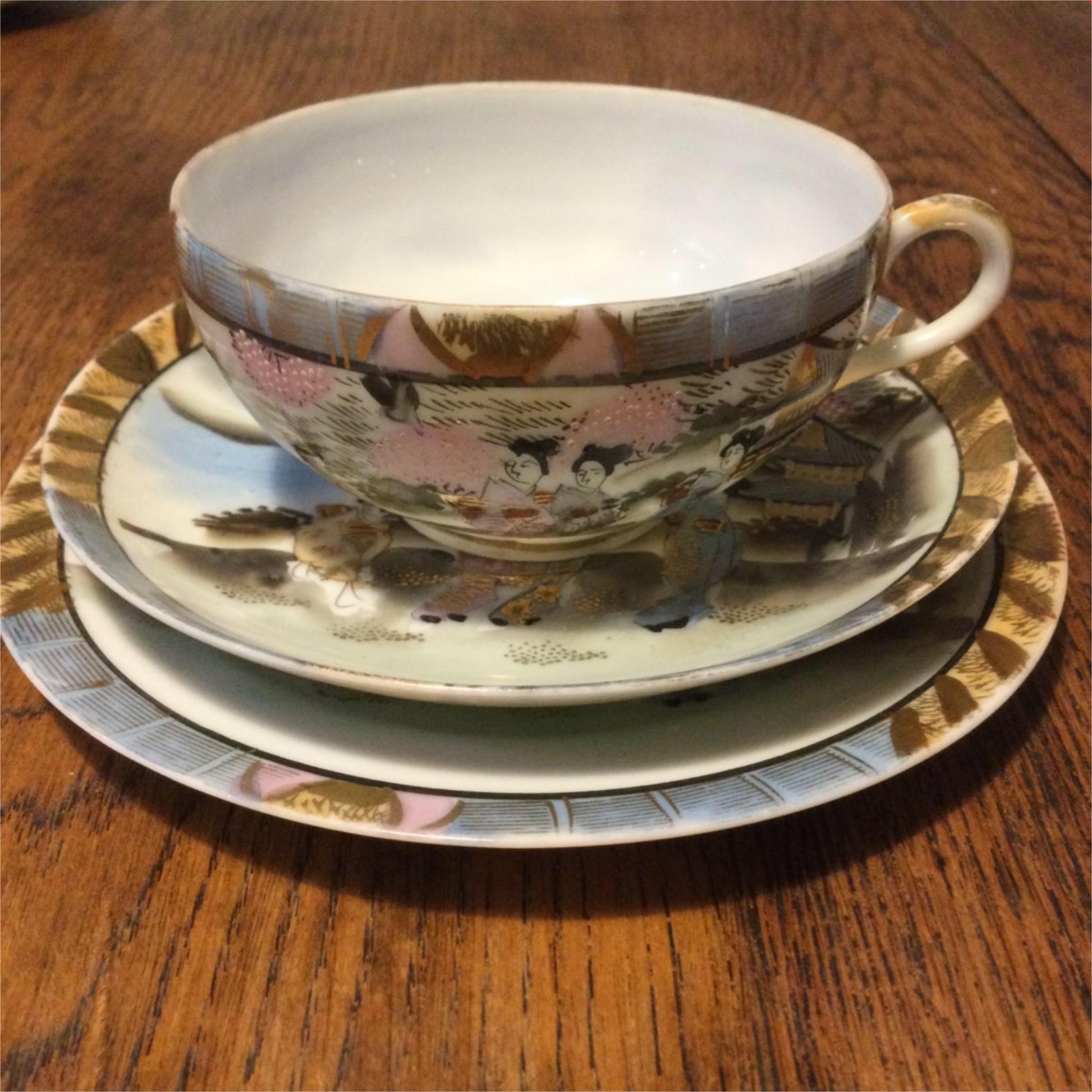 Beautiful Vintage Japanese eggshell china trio cup saucer plate hand painted