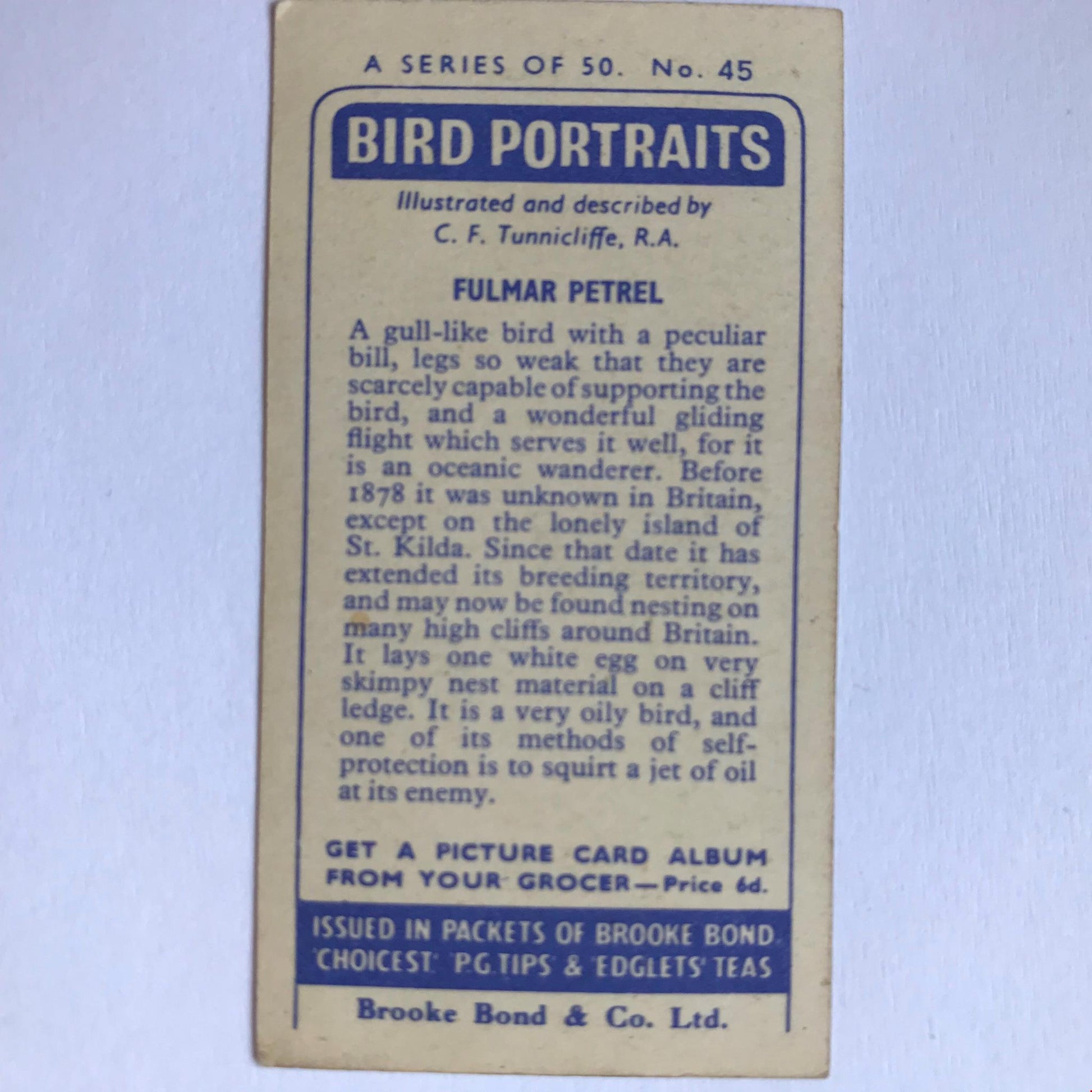 BIRD PORTRAITS Brooke Bond Tea Cards Sold Individually - take your pick