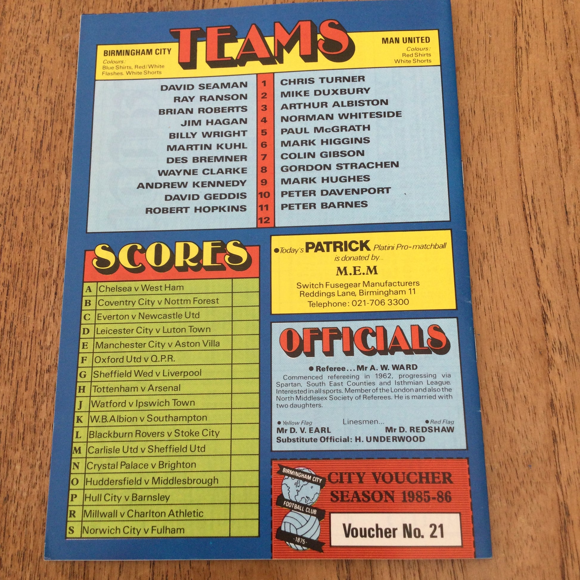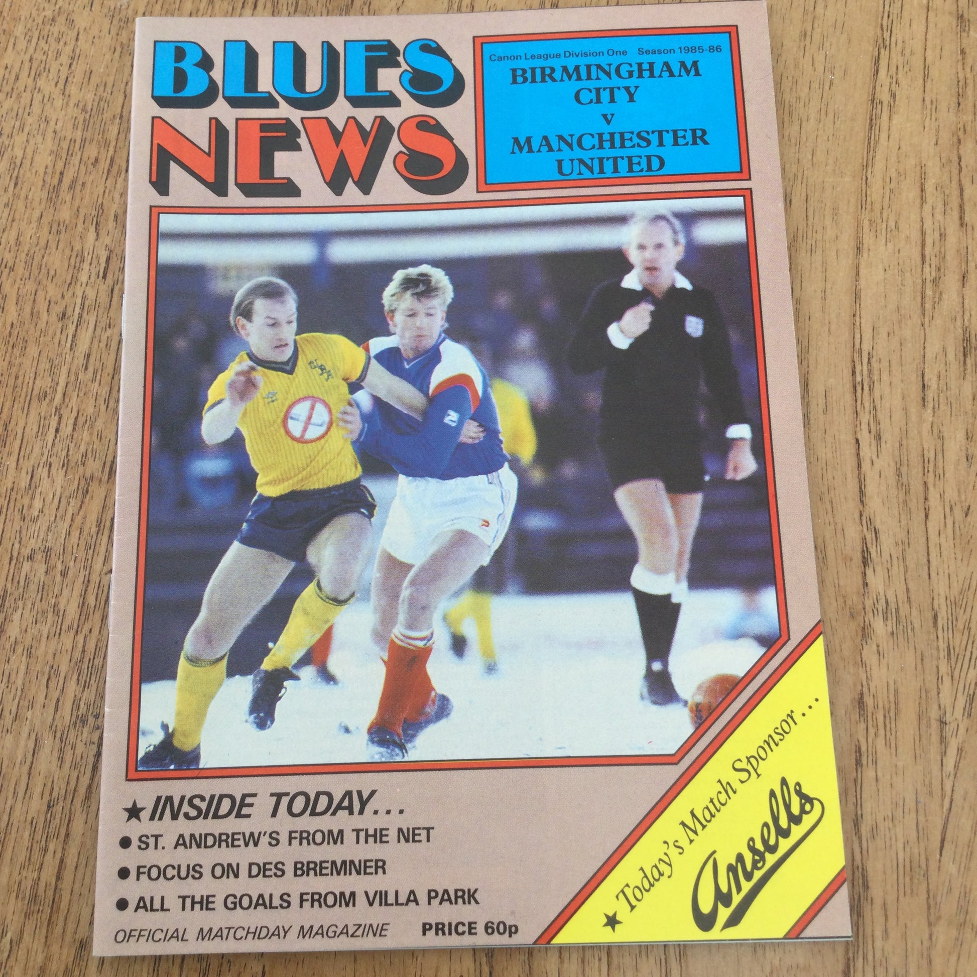 Birmingham City v Manchester United League Div 1 Football Programme 1986 29/3/86 Des Bremner