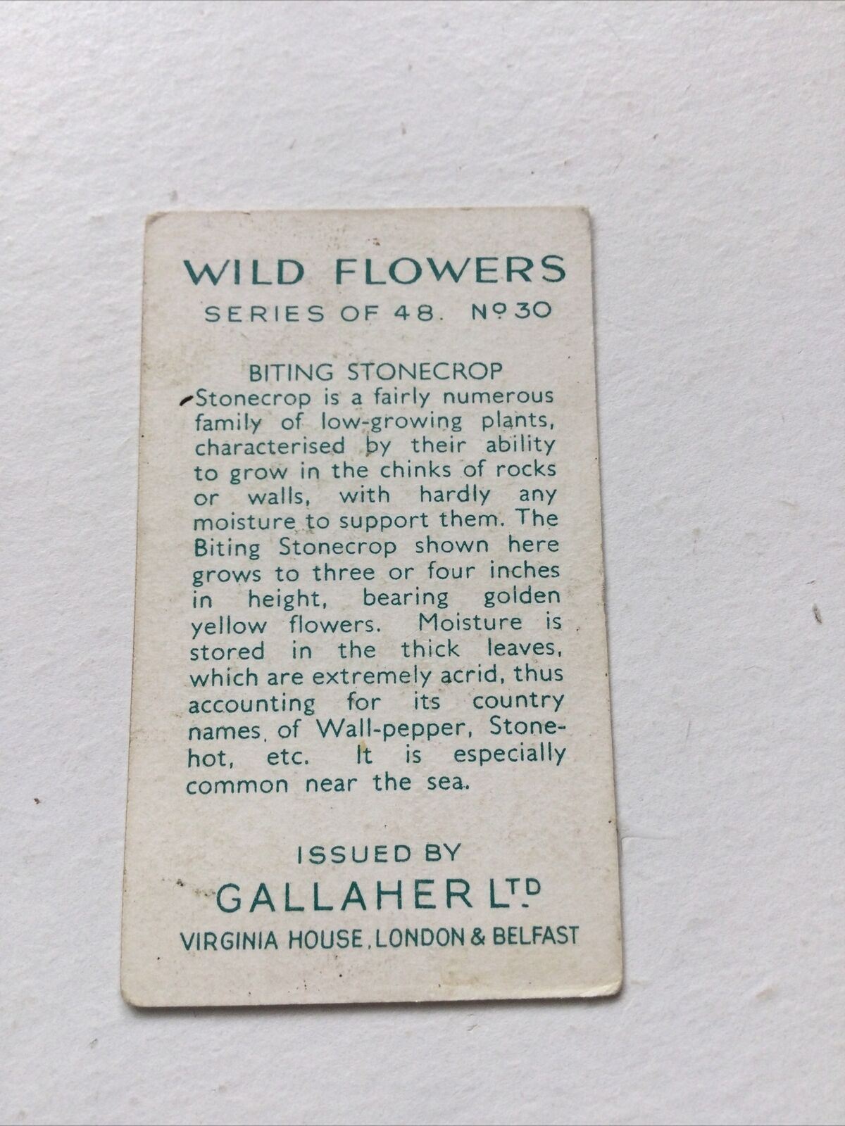 BITING STONECROP Cigarette Card Wild Flowers #30/48 Vintage Colourful Yellow